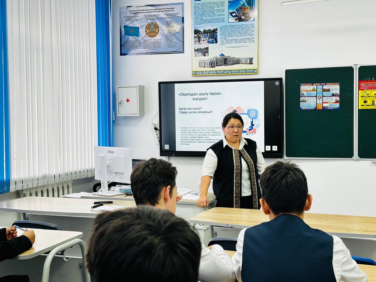 “Психология әлемі” апталығы аясында мектеп психологі Т.С. Уранова және әлеуметтік педагог А.С.Шаханова бірлесе отырып, жасөспірімдер арасында аутодеструктивті мінез-құлықтың алдын-алу психопрофилактикалық жұмыстарды жетілдіру бағытында 9 сынып оқушыларымен “Менің әлемім” қауіпсіз орта атты психологиялық тренинг өткізді.
