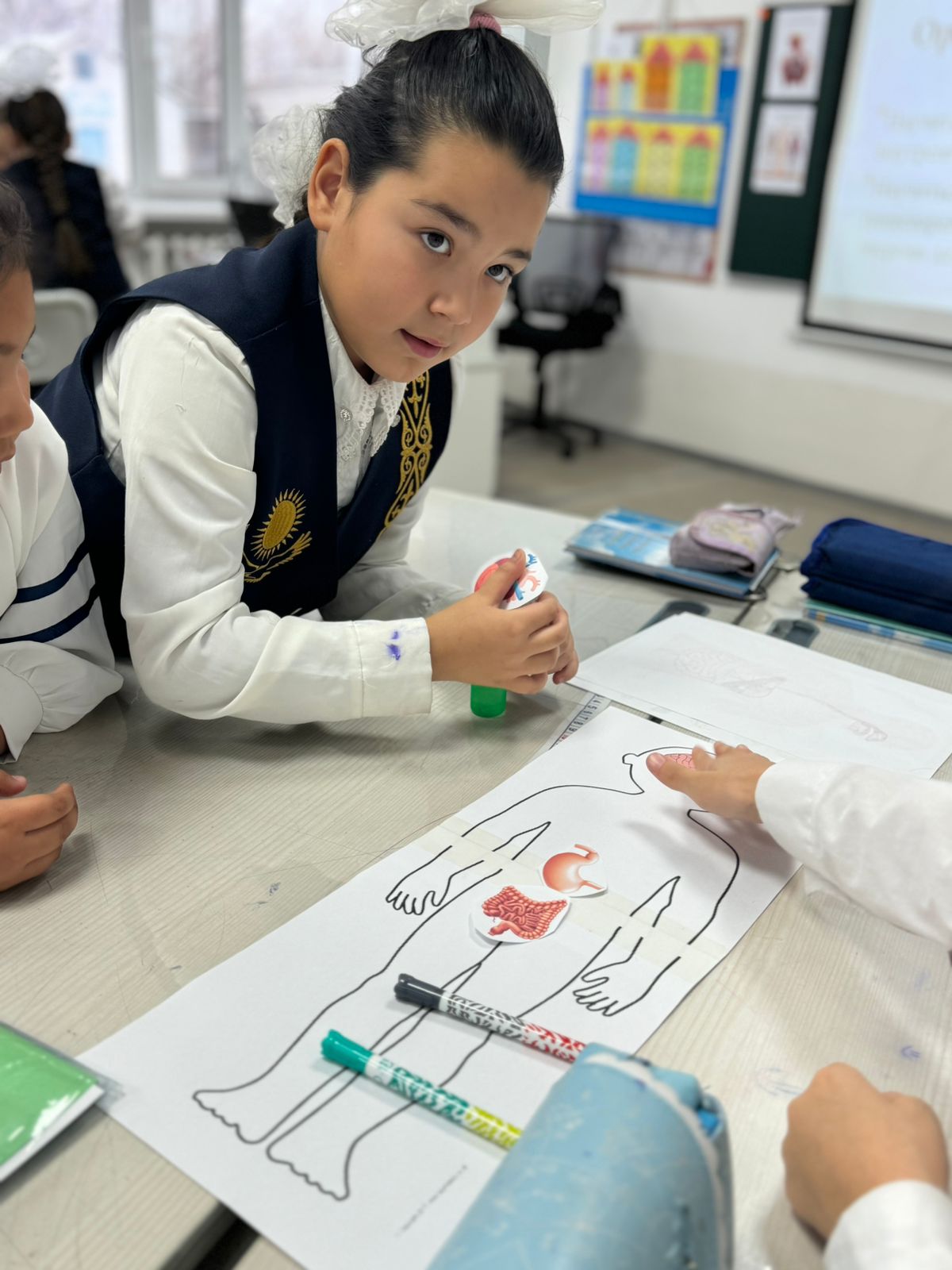 Бастауыш сынып мұғалімі А.Г.Жебраил 3 "Б" сынып оқушыларымен жаратылыстану сабағында "Ас қорыту жүйесі" тақырыбында тиімді сабақ өткізді. Сабақ барысында адам ағзасының ас қорыту жүйесімен танысып, берілген тапсырмаларды жоғары дәрежеде орындай алған оқушылардың білім деңгейлері-ұстаз еңбегінің қажымас нәтижесі екенінің дәлелі бола білді.
