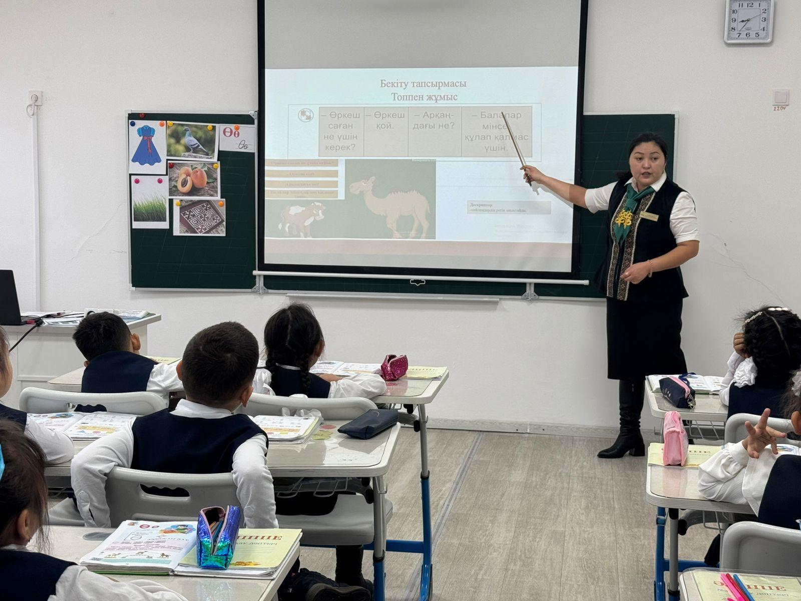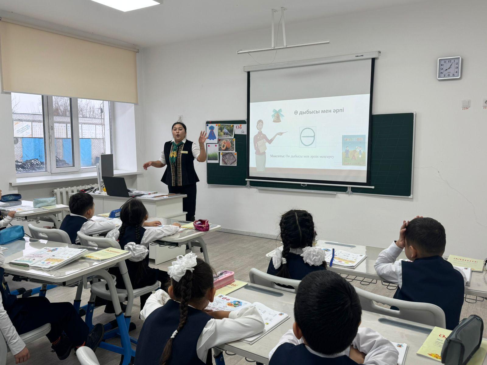 3 желтоқсан күні қазақ тілінде білім беретін бастауыш сынып әдістемелік бірлестігінің апталығы аясында бастауыш сынып мұғалімі Нурмухаметова Жұлдыз Даулетбековна 1 «Ә» сыныбында әліппе пәнінен «Өө дыбысы және әрпі» тақырыбында тиімді сабақ өткізді. Оқушылар оқу, буынға бөлу, дыбыстық талдау бойынша жұмыс түрлерінде жоғары деңгейдегі дайындықтарын көрсете білді.