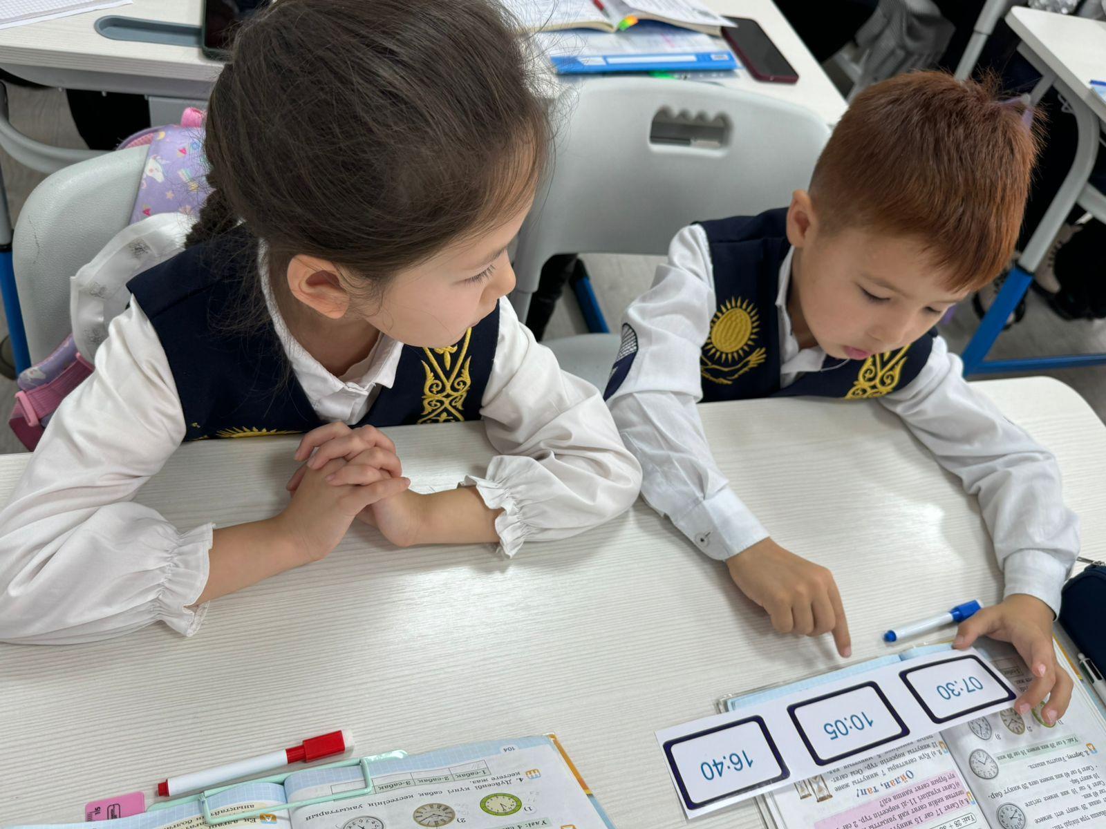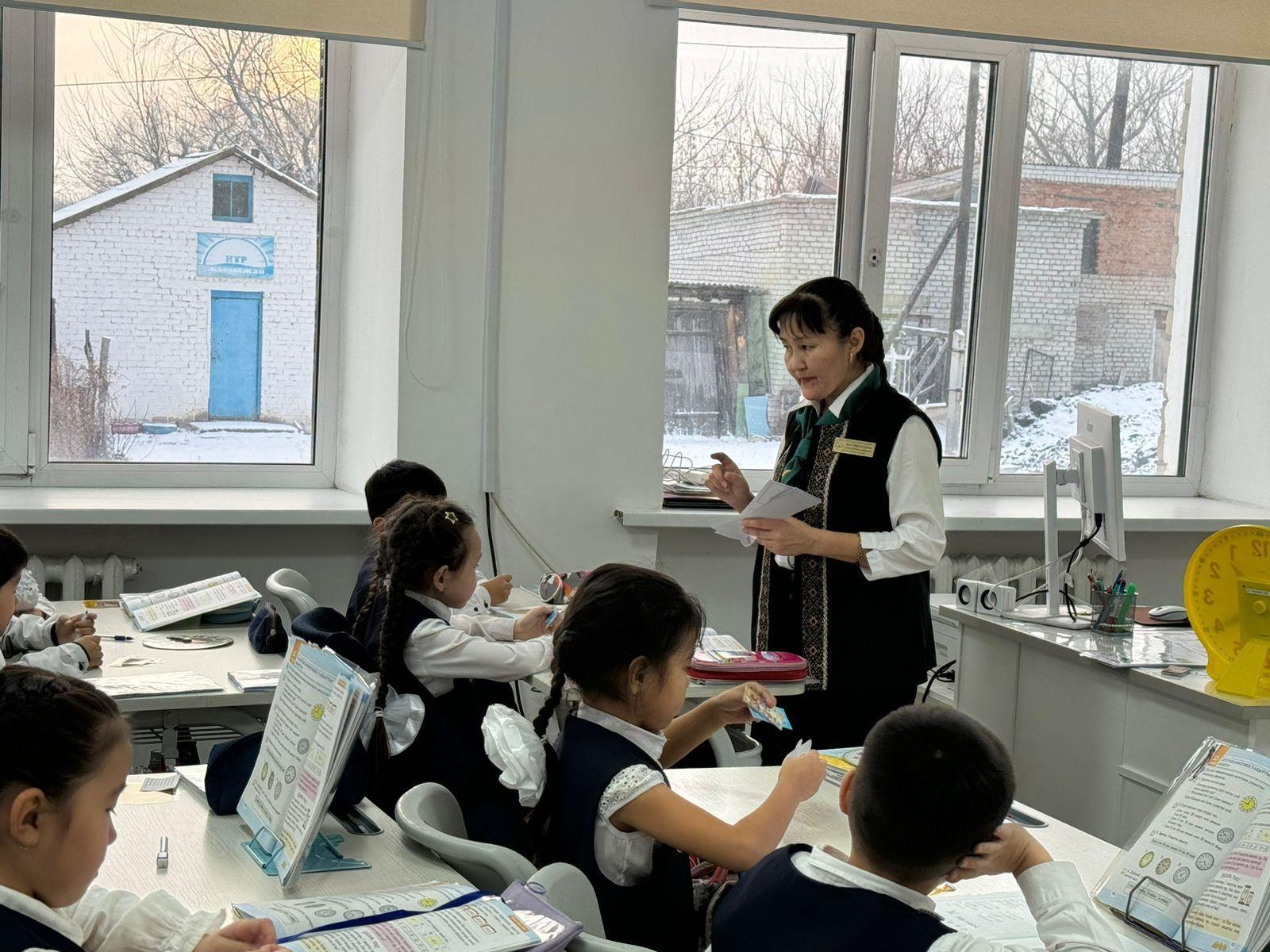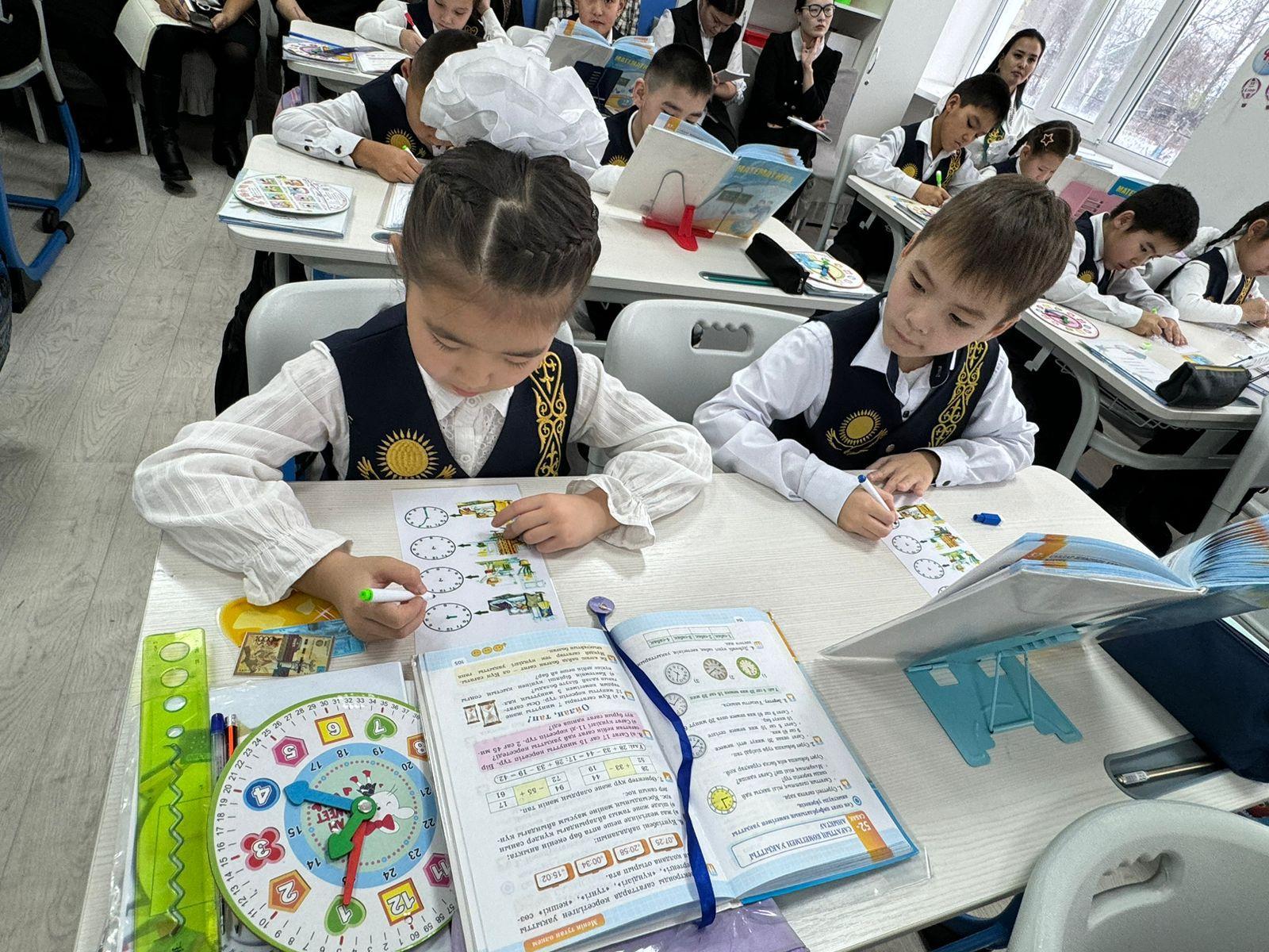 Бастауыш сынып мұғалімі Мусулманкулова Баян Каблашимовна 2- сынып оқушыларымен математика пәнінен "Сағаттың көмегімен уақытты анықтау" тақырыбында тиімді сабақ өткізді. Сабақ барысында оқушылар "сағат" туралы түсінік қалыптастырып , уақыттың өлшем бірліктері мен аралықтары жайлы түрлі тапсырмалар орындап,түсінгендеріне қорытынды жасады.
