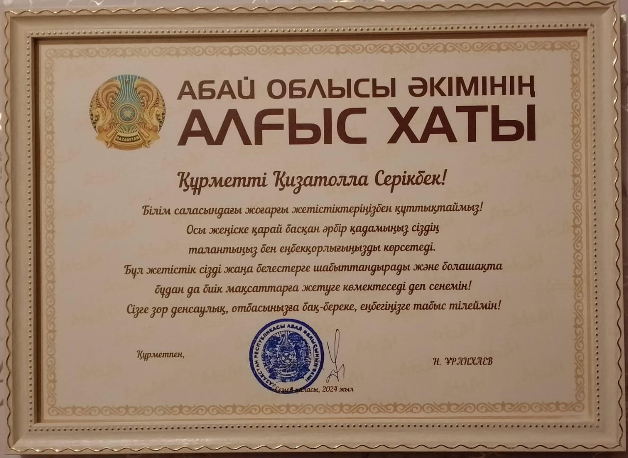 📌Абай облысы әкімінің АЛҒЫС ХАТЫ