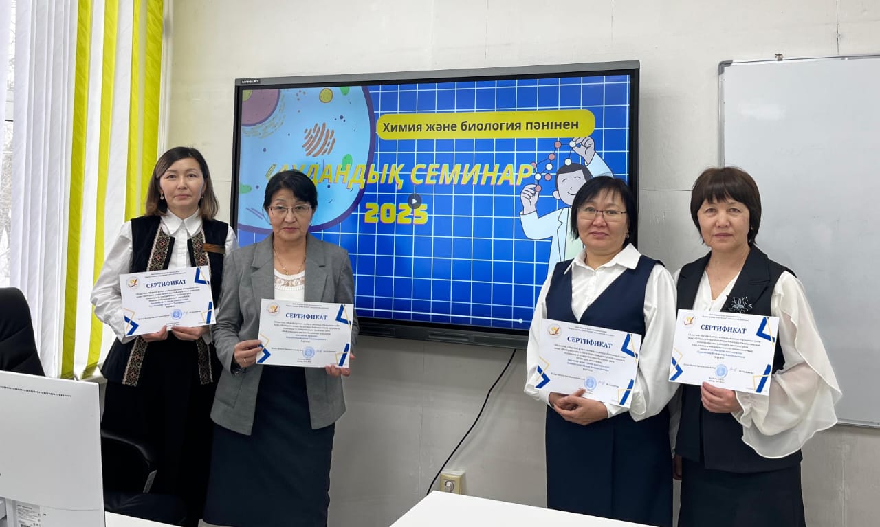 8-қаңтар күні аудандық білім бөлімінің ұйымдастыруымен облыстық «МЕРЕЙЛІ ҰСТАЗ» ЖОБАСЫ аясында «Ғылымнан ілім» және «Шебер олжа» бағыттары бойынша семинарда мектебіміздің педагог-зерттеуші ұстаздары дене шынықтыру пәні мұғалімдері И.С. Сагимбаев, Е.С.Таширяев, химия пәні мұғалімі Г.Т.Сулейменова, орыс тілі мен әдебиеті пәні мұғалімдері О.В.Падалко, Г.К.Мухамеджанова өз іс-тәжірибелерімен бөлісіп, ұстаздық жолды таңдаған жас мамандарға шеберлік сыныптарын өткізіп қайтты.