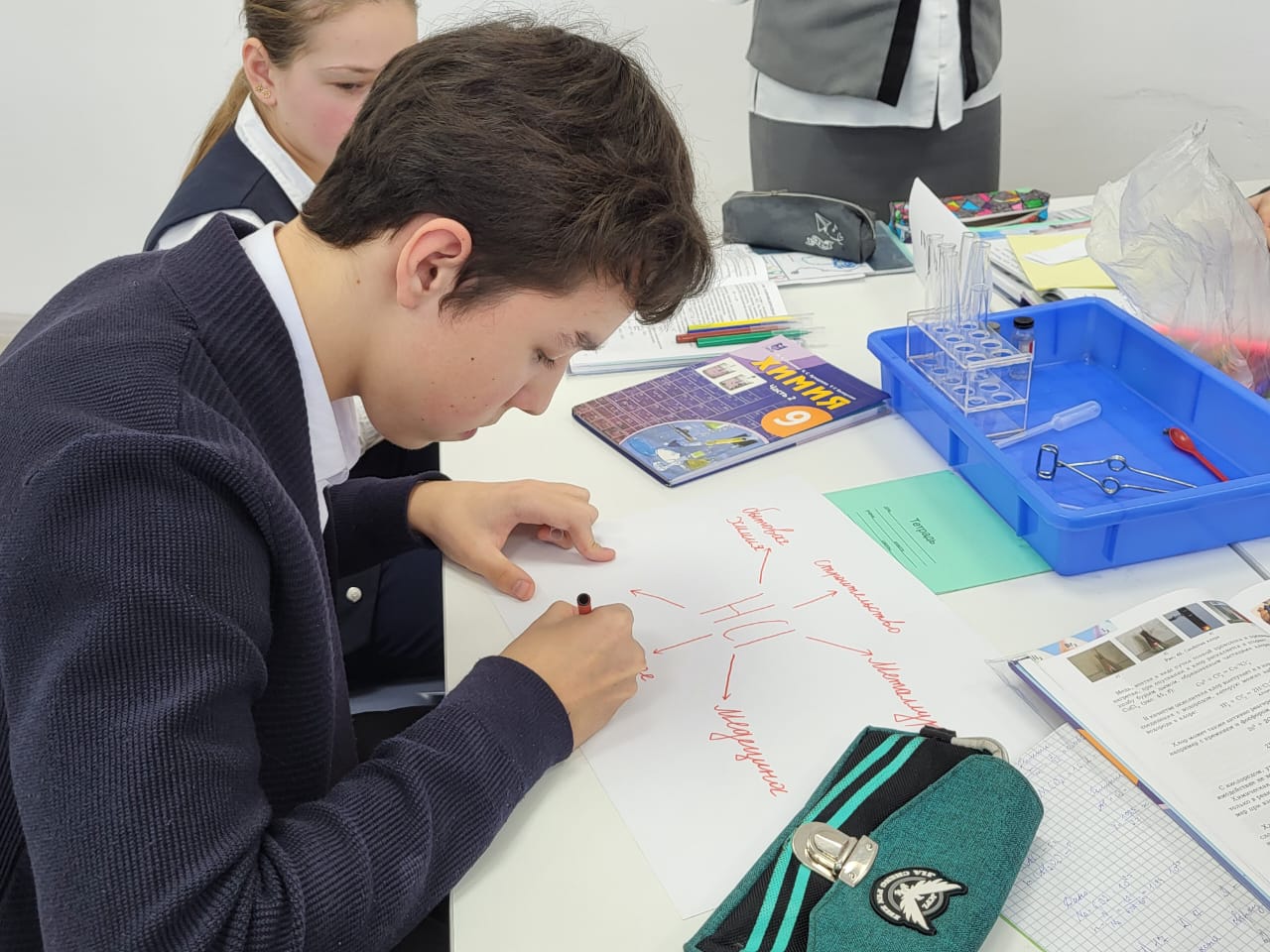✅Түсіндірілім мен тәжірибелік жұмыстар қатар орындалған сабақта оқушылар хлорсутек қышқылының қасиеттері мен құрылысын жетік меңгеруге мақсатты түрде қол жеткізді.