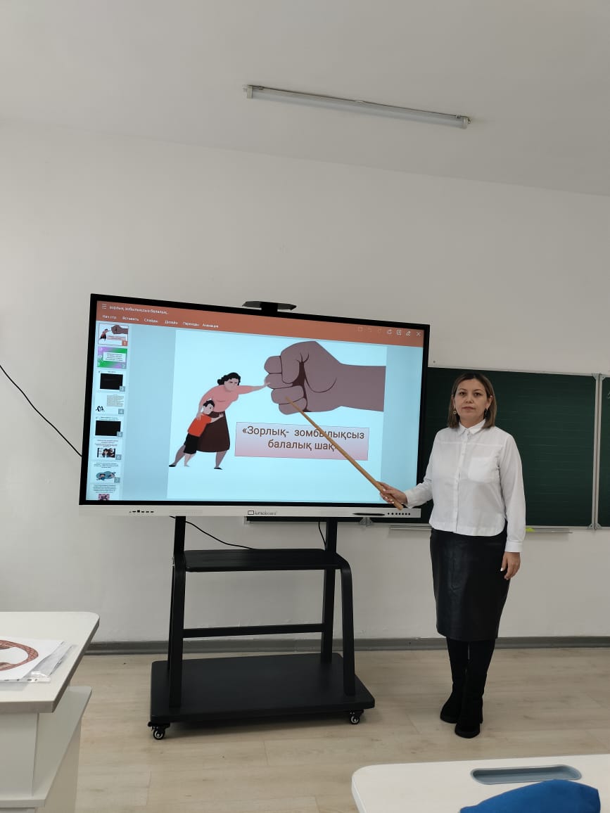 ❇️Осы орайда 2 "Ә" сынып жетекшісі БУКЕНБАЕВА АСЕЛ КАКЕНОВНА "Зорлық-зомбылықсыз балалық шақ" тақырыбында оқушылардың өз құқықтары мен міндеттерін білу, әдеп нормаларын ұстану, бала құқықтары туралы конвенцияның негізгі ережелері туралы білім деңгейін арттыру мақсатында тәрбие сағатын өткізді.