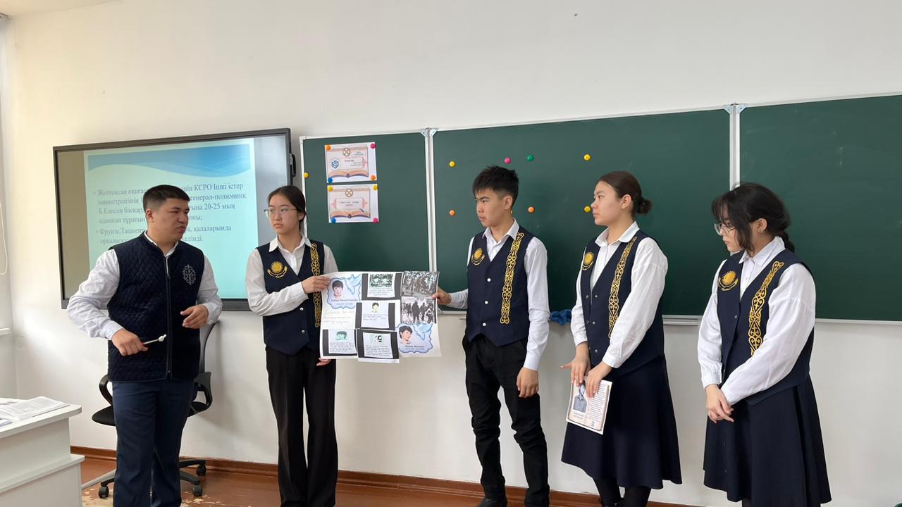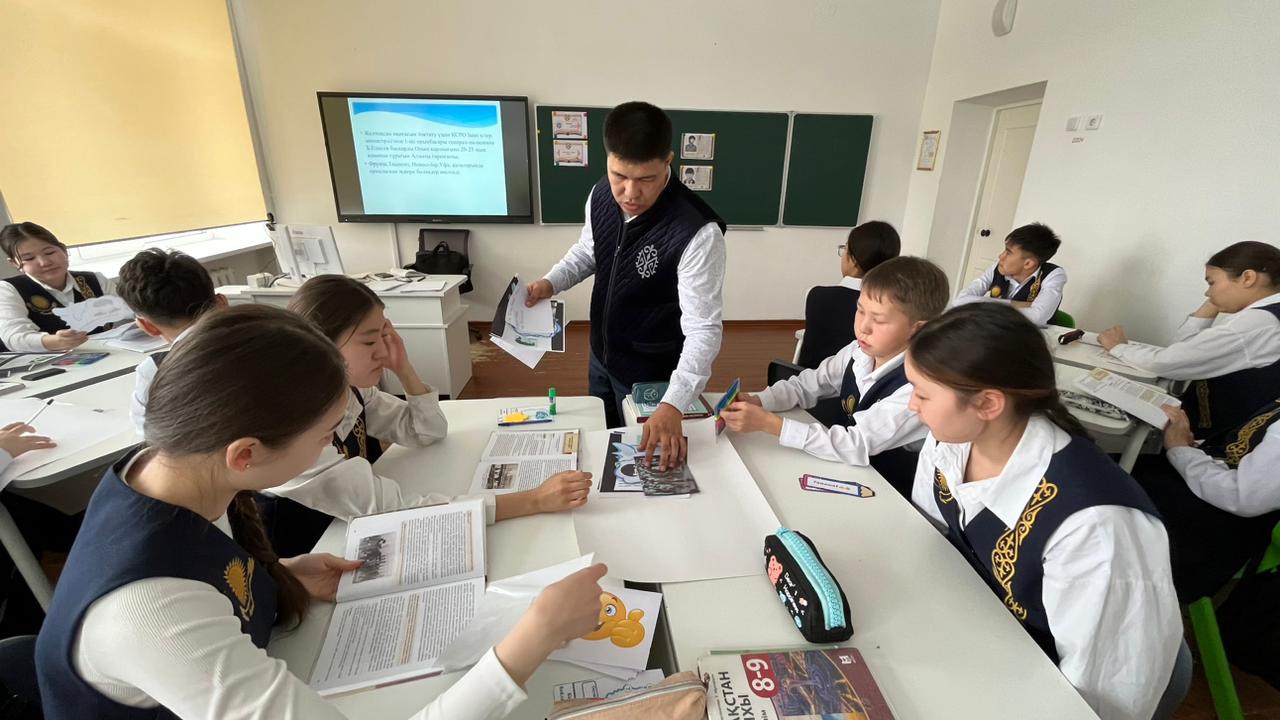 ✅Тарих пәні мұғалімі ЕСМУРАТОВ АРМАН ҚАЖЫМҰРАТҰЛЫ 9 «А» сынып оқушыларымен Қазақстан тарихы пәнінен «ЖЕЛТОҚСАН ОҚИҒАСЫ» тақырыбында ашық сабақ өткізді.