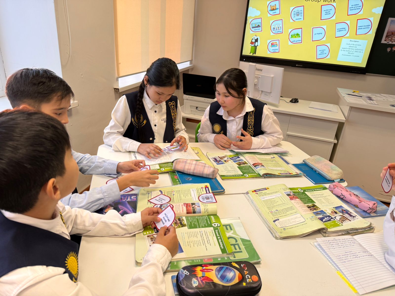 ✅Апталық аясында ағылшын тілі пәні мұғалімі АСХАТҚЫЗЫ АЯЖАН 6 "Ә" сынып оқушыларымен " Tourist attractions" тақырыбында ашық сабақ өткізді.