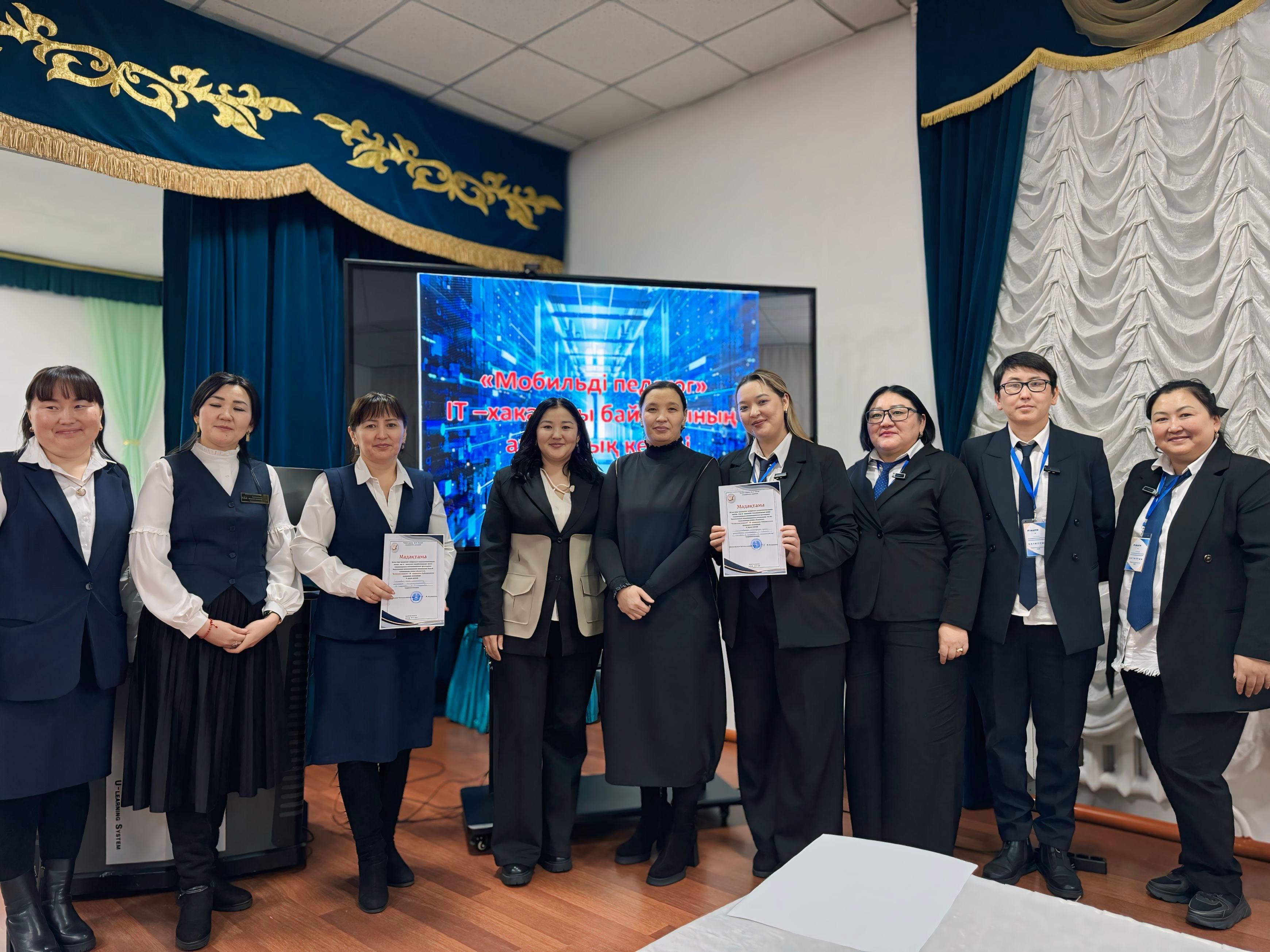 Білім беру процесіне цифрлық технологияларды енгізу, оқу іс-әрекетін оңтайландыру және оқушылардың мотивациясын арттыруға бағытталған инновациялық шешімдер жасау мақсатында өткен АУДАНДЫҚ «МОБИЛЬДІ ПЕДАГОГ» ІТ –ХАКАТОНЫ БАЙҚАУЫНА мектебіміздің ұстаздары информатика пәні мұғалімі ВЕНЕРА САТЫПАЛДЫҚЫЗЫ, информатика пәні мұғалімі ОМАРОВА АЙГЕРІМ ТАЛҒАТОВНА, математика пәні мұғалімі ҮМІТКҮЛ ЕРБОЛАТ, математика пәні мұғалімі ЛЕНСОВА ГҮЛМАРИ РИНАТҚЫЗЫ қатысып жүлделі ІІ ОРЫНҒА ие болды.