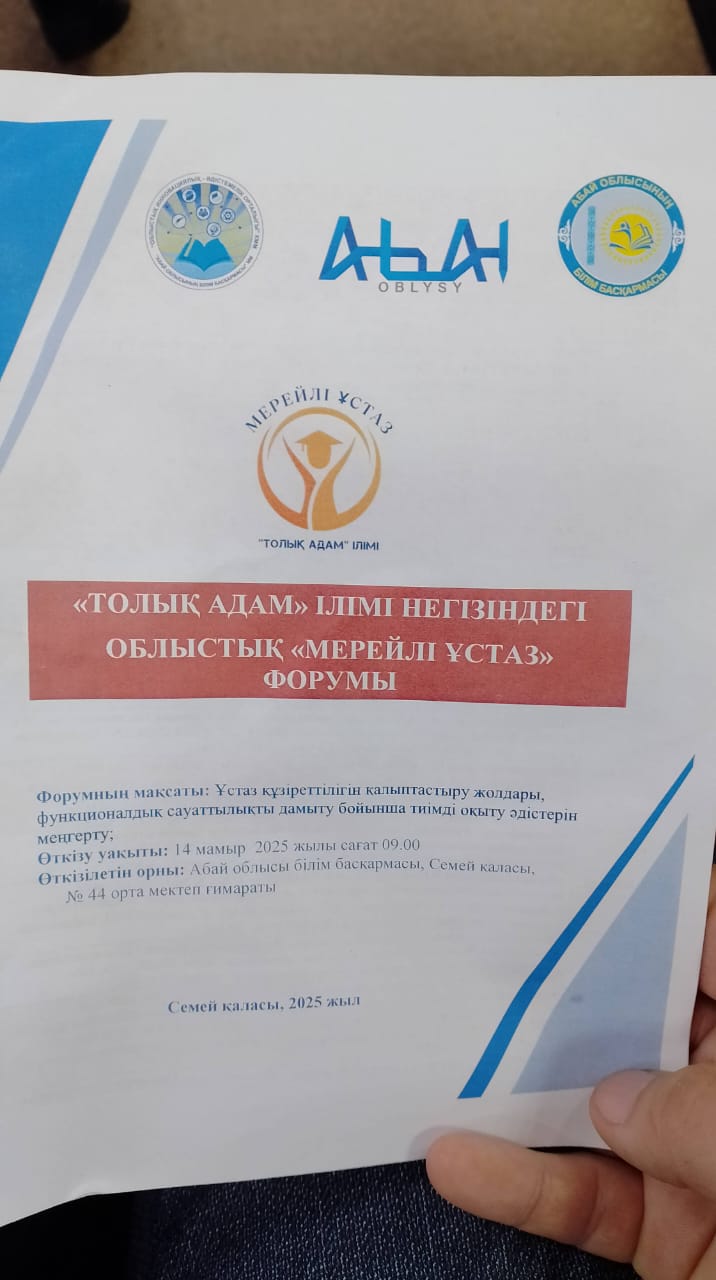 ✅14 мамыр күні Ұстаз құзіреттілігін қалыптастыру жолдары, функционалдық сауаттылықты дамыту бойынша тиімді оқыту әдістерін жақсарту мақсатында "Толық адам" ілімі негізінде ОБЛЫСТЫҚ "МЕРЕЙЛІ ҰСТАЗ" форумы өтті.