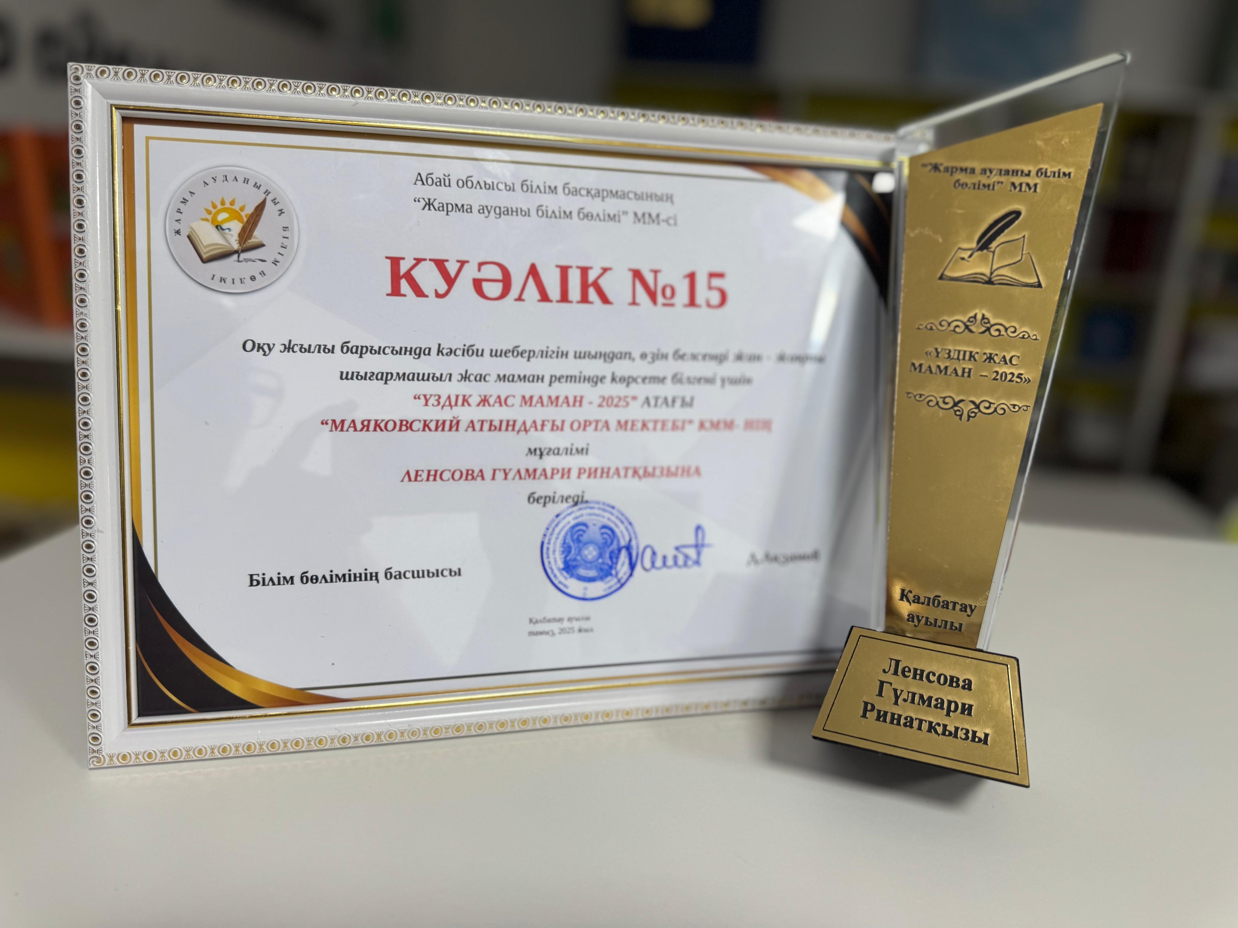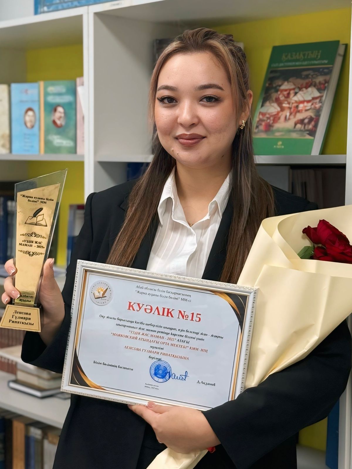 28 август 2025 0 1 2 3 4 5 "ҮЗДІК ЖАС МАМАН-2025" атағының иегері ⚜️⚜️⚜️Оқу жылы барысында кәсіби шеберлігін шыңдап, өзін белсенді жан-жақты шығармашыл жас маман ретінде көрсете білгені үшін "ҮЗДІК ЖАС МАМАН-2025" атағының иегері математика пәні мұғалімі ЛЕНСОВА ГҮЛМАРИ РИНАТҚЫЗЫ.ҚҰТТЫҚТАЙМЫЗ!!!