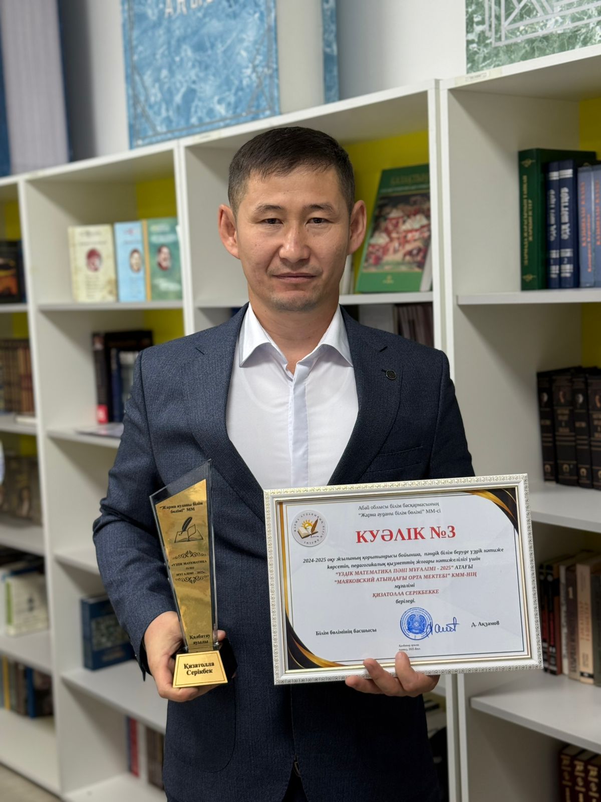 ⚜️⚜️⚜️2024-2025 оқу жылының қорытындысы бойынша пәндік білім беруде үздік нәтиже көрсетіп, педагогикалық қызметтің жоғары нәтижелілігі үшін "ҮЗДІК МАТЕМАТИКА ПӘНІ МҰҒАЛІМІ-2025" атағының иегері ҚИЗАТОЛЛА СЕРІКБЕК.