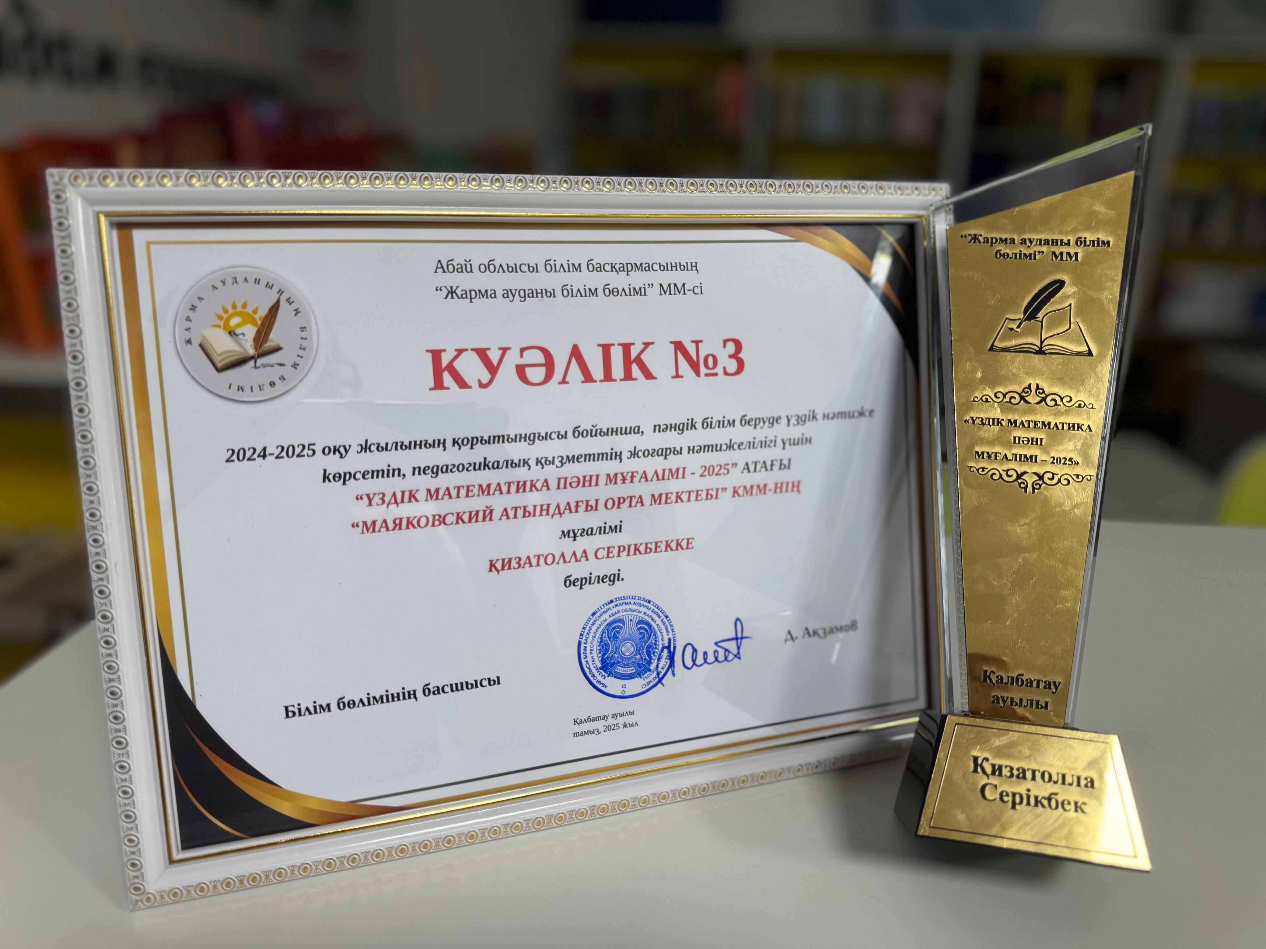 "ҮЗДІК МАТЕМАТИКА ПӘНІ МҰҒАЛІМІ-2025" атағының иегері