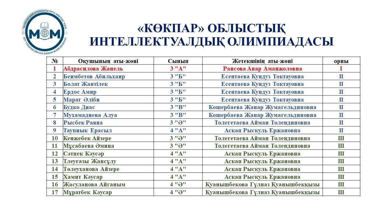 ⚜️ «КӨКПАР» ИНТЕЛЛЕКТУАЛДЫҚ ОБЛЫСТЫҚ ОЛИМПИАДА
