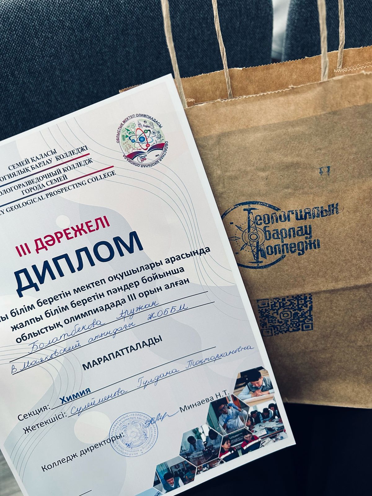 ✅ По итогам олимпиады ученица 9 «Ә» класса БОЛАТБЕКОВА АРУЖАН заняла призовое III МЕСТО по предмету «ХИМИЯ».
