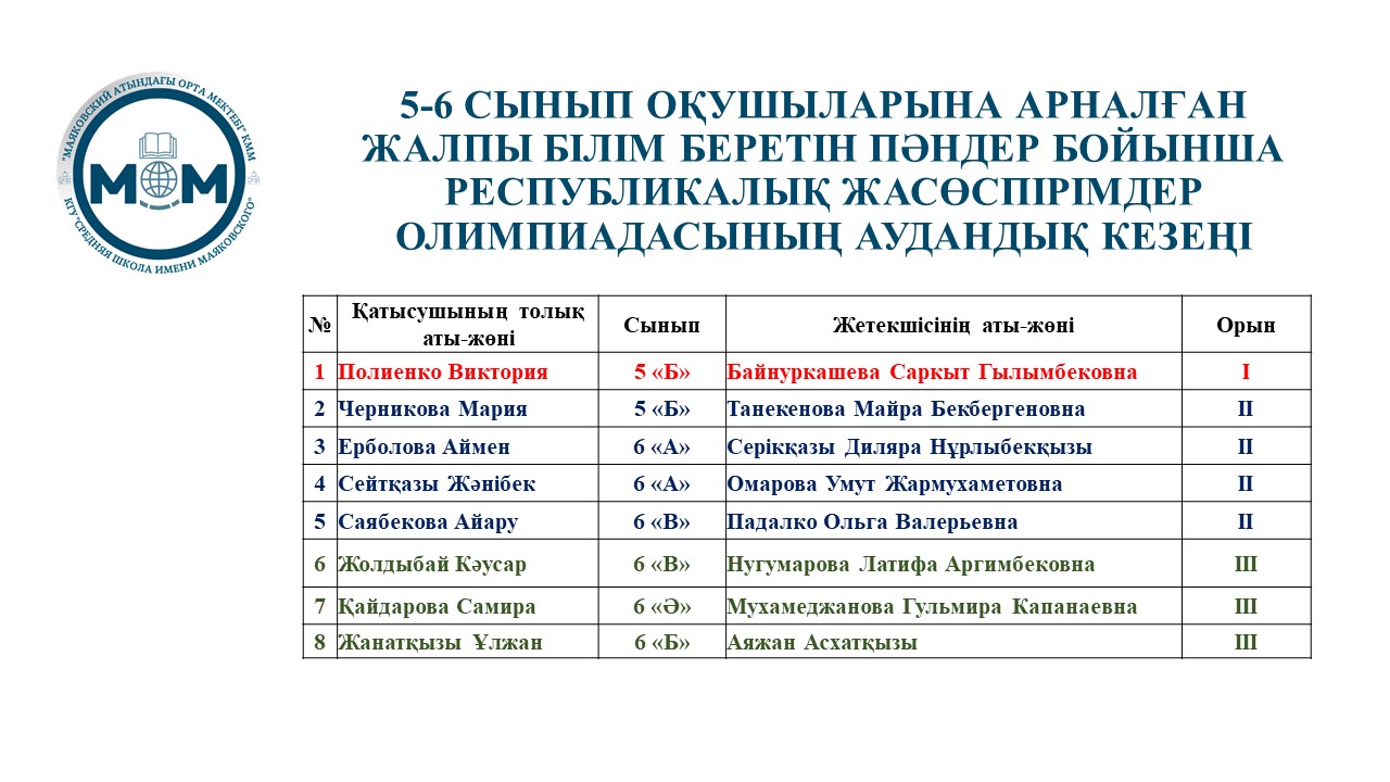 📌Олимпиадаға мектебімізден 16 оқушы қатысып, 8 жүлделі орынға ие болды.