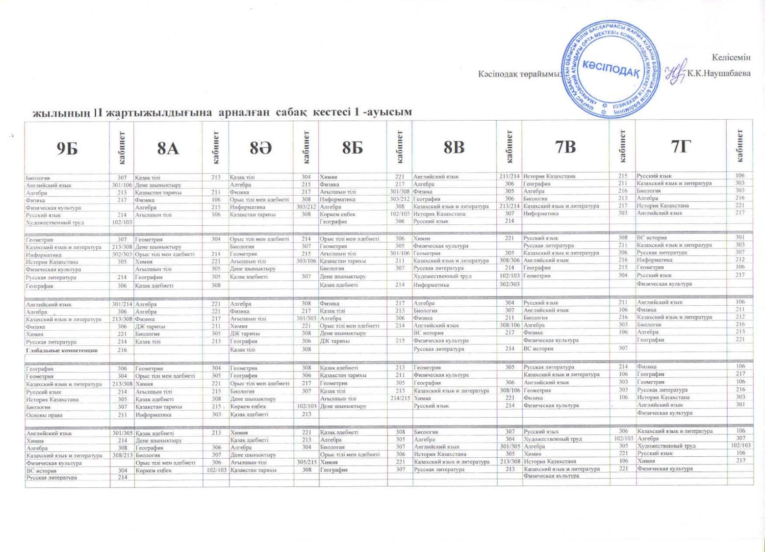2024-2025 оқу жылының сабақ кестесі 1-жартыжылдык
