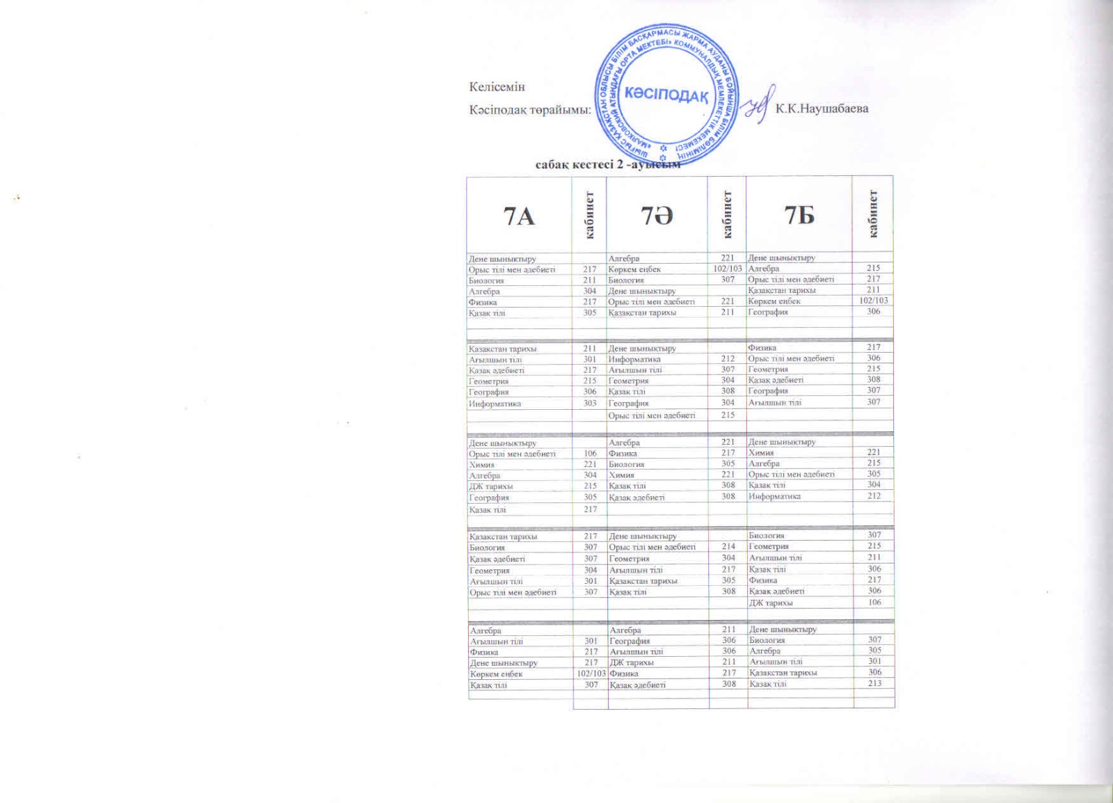 2025-2026 оқу жылының сабақ кестесі 1-жартыжылдык