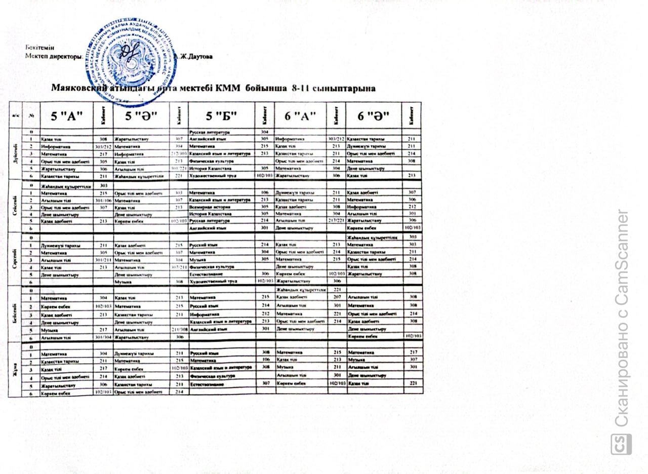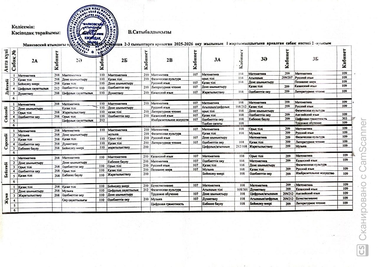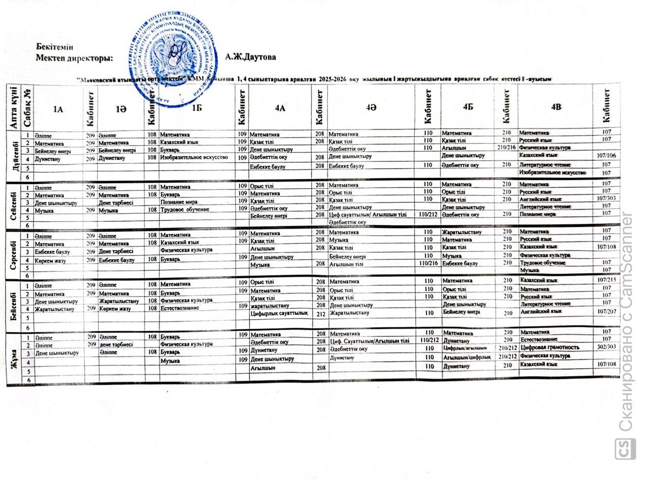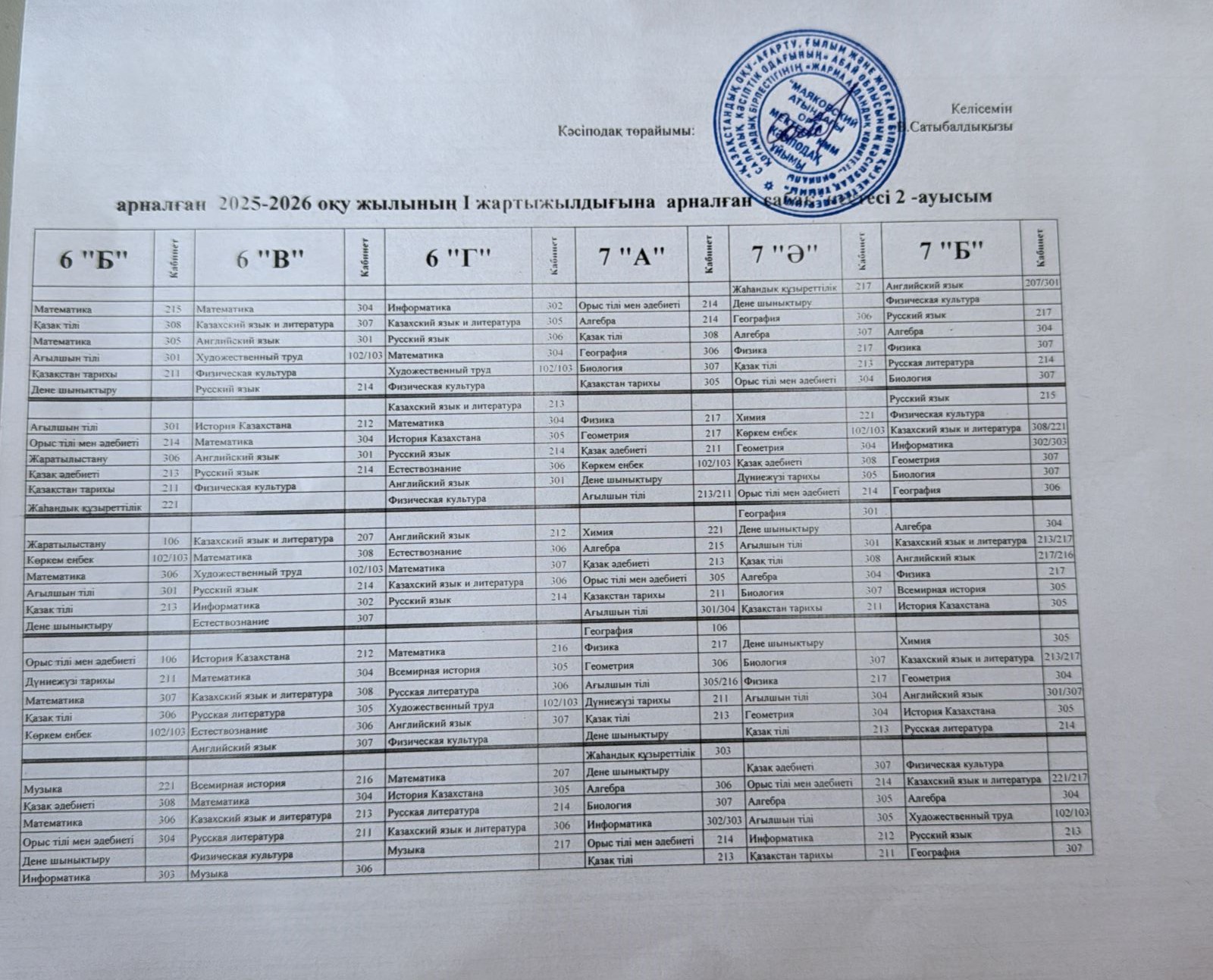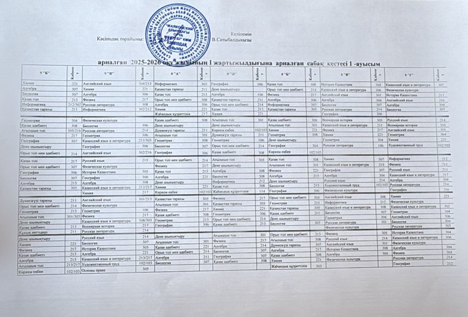 2025-2026 оқу жылының сабақ кестесі 1-жартыжылдык