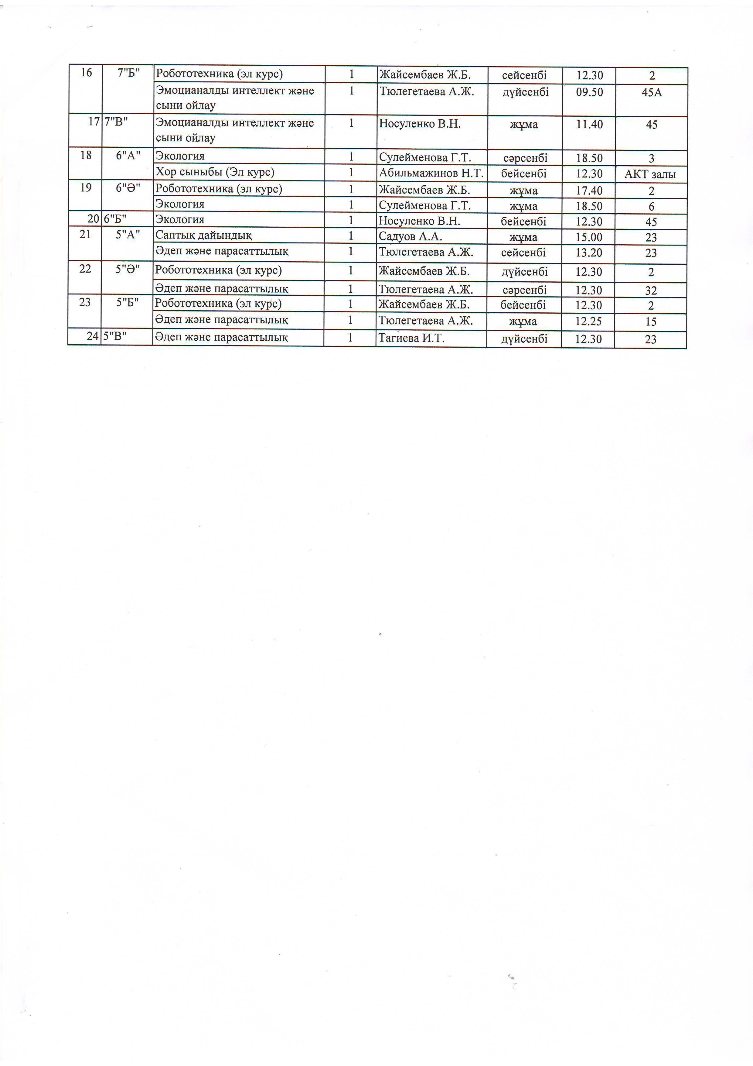 2019-2020 оқу жылына вариативті сабақтар кестесі