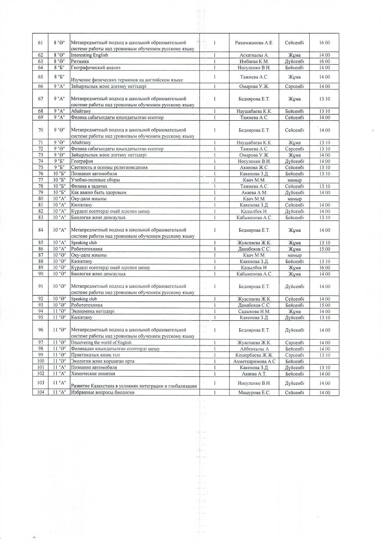 2019-2020 оқу жылына вариативті сабақтар кестесі