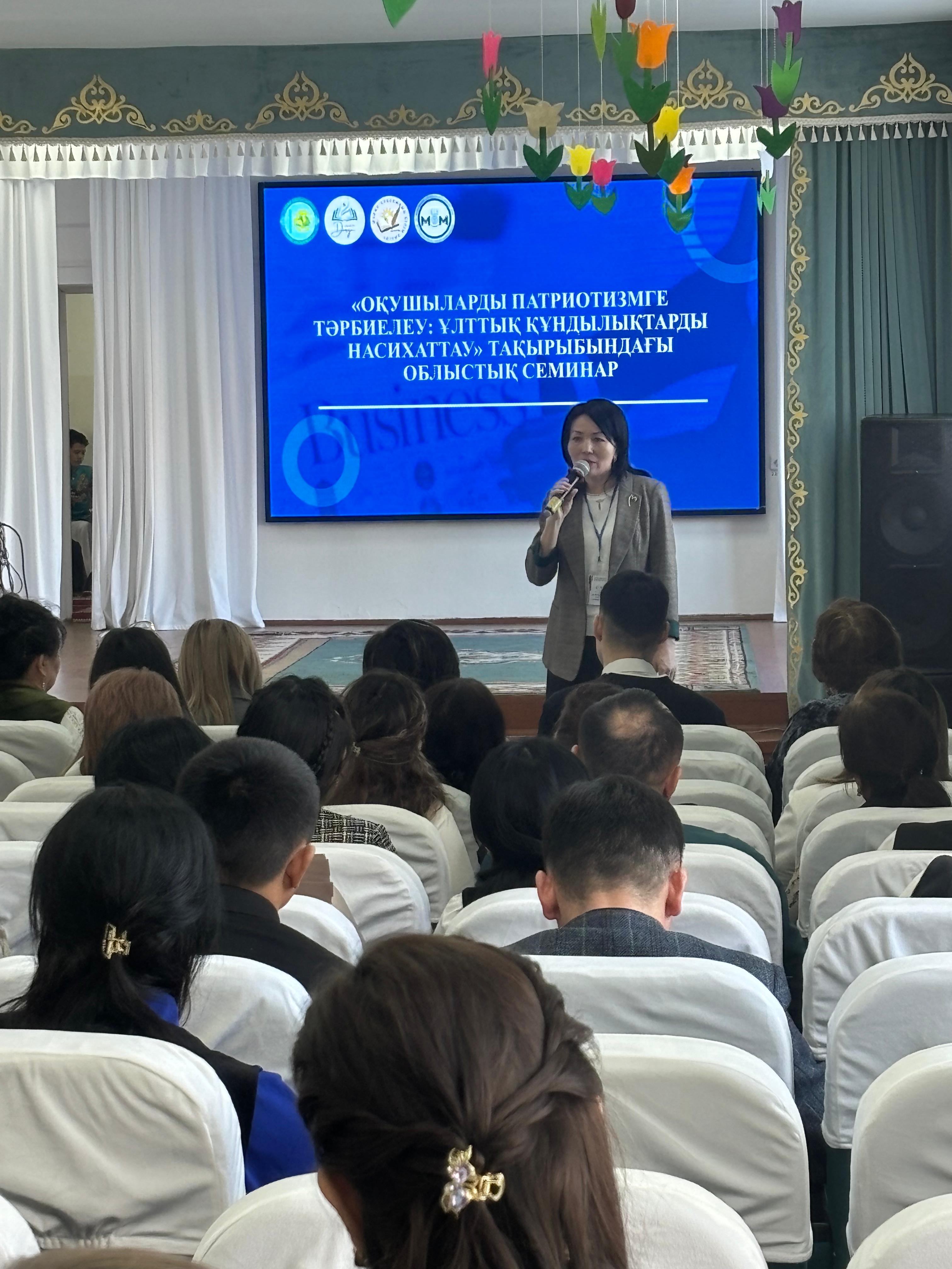 "ОҚУШЫЛАРДЫ ПАТРИОТИЗМГЕ ТӘРБИЕЛЕУ: ҰЛТТЫҚ ҚҰНДЫЛЫҚТАРДЫ НАСИХАТТАУ"АТТЫ ОБЛЫСТЫҚ СЕМИНАР