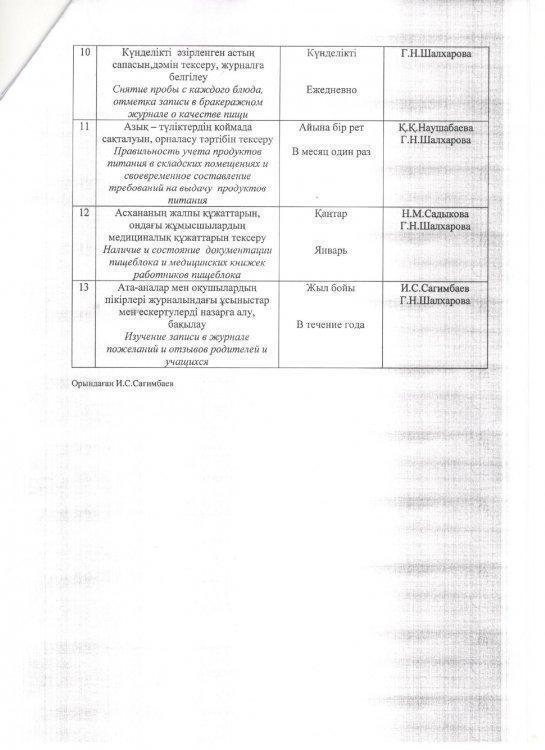 Тамақпен қамтамасыз ету бойынша мектеп комиссиясының жұмыс жоспары
