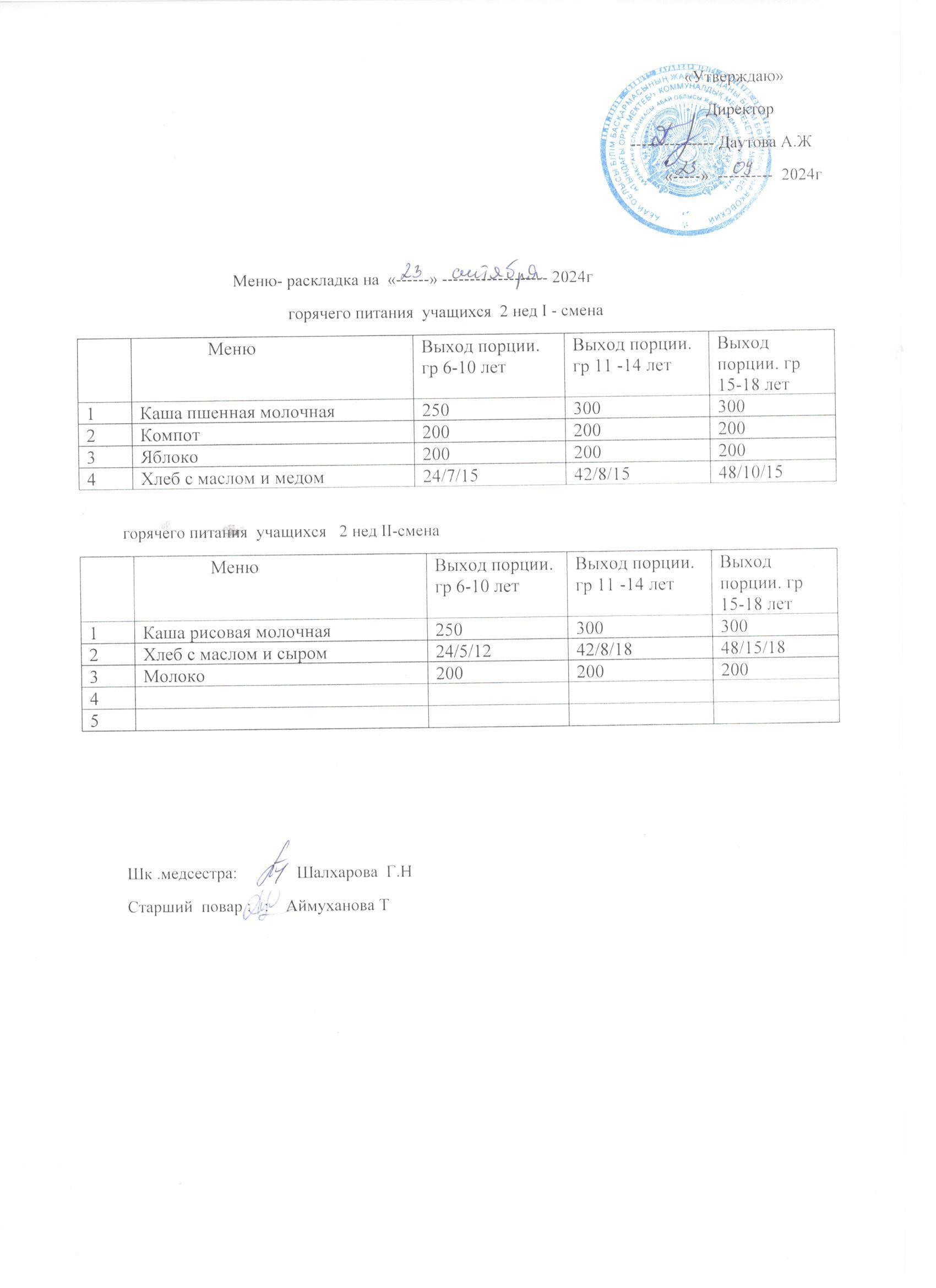 Мәзір/Меню