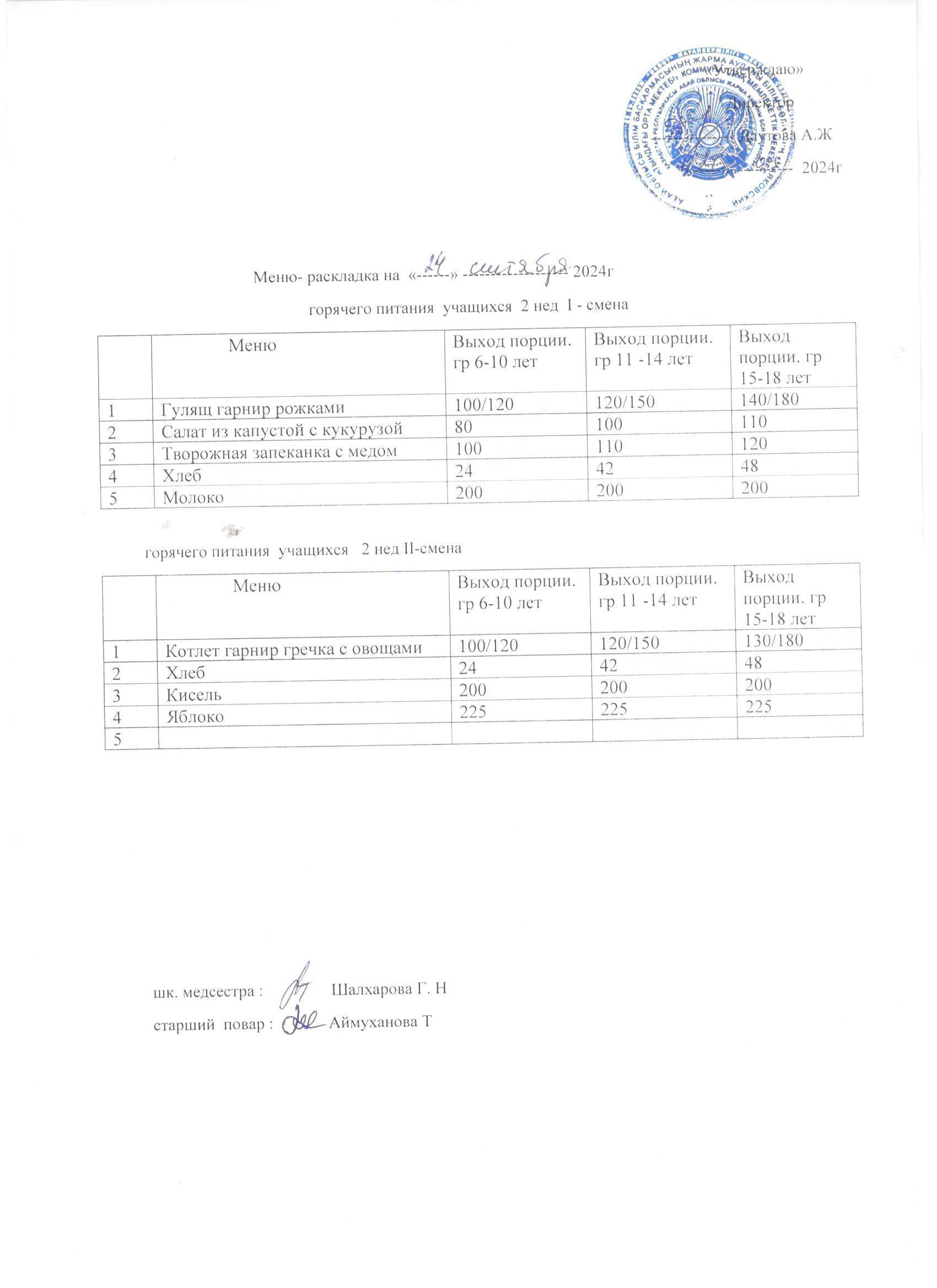 Мәзір/Меню