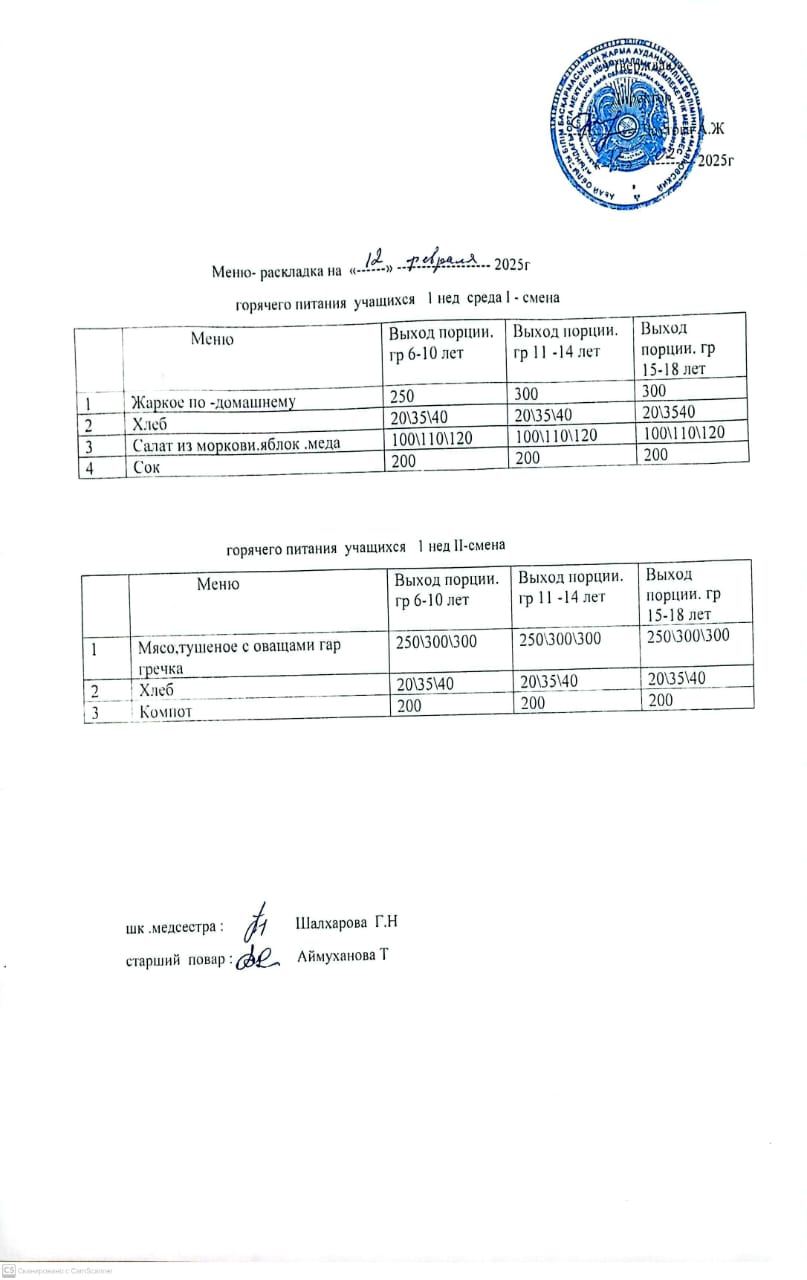 Мәзір/Меню