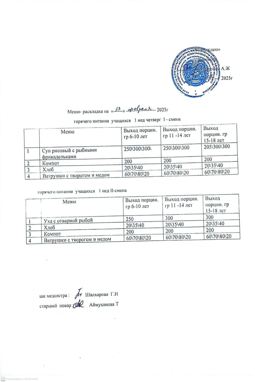 Мәзір/Меню