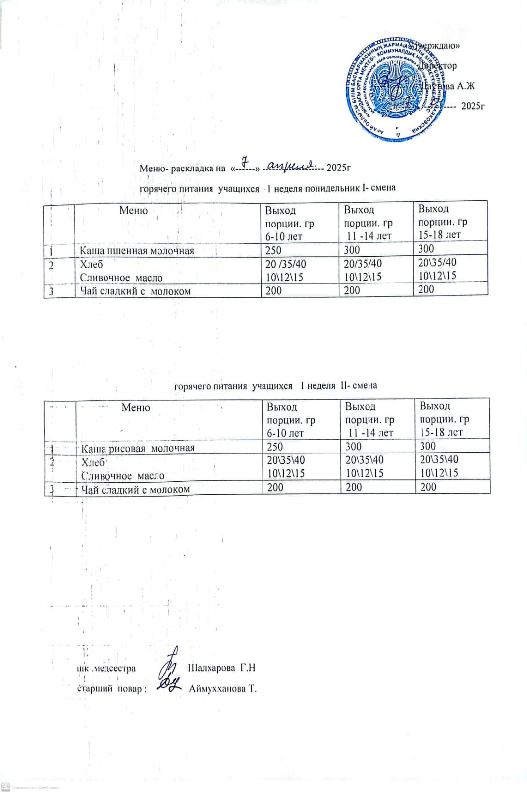 Мәзір/Меню