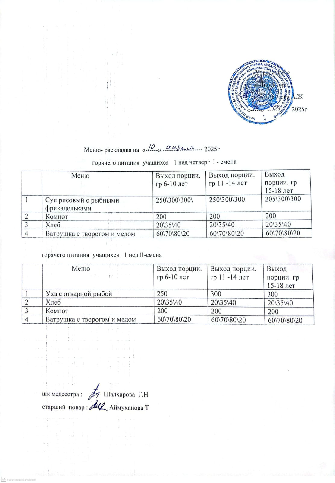 Мәзір/Меню