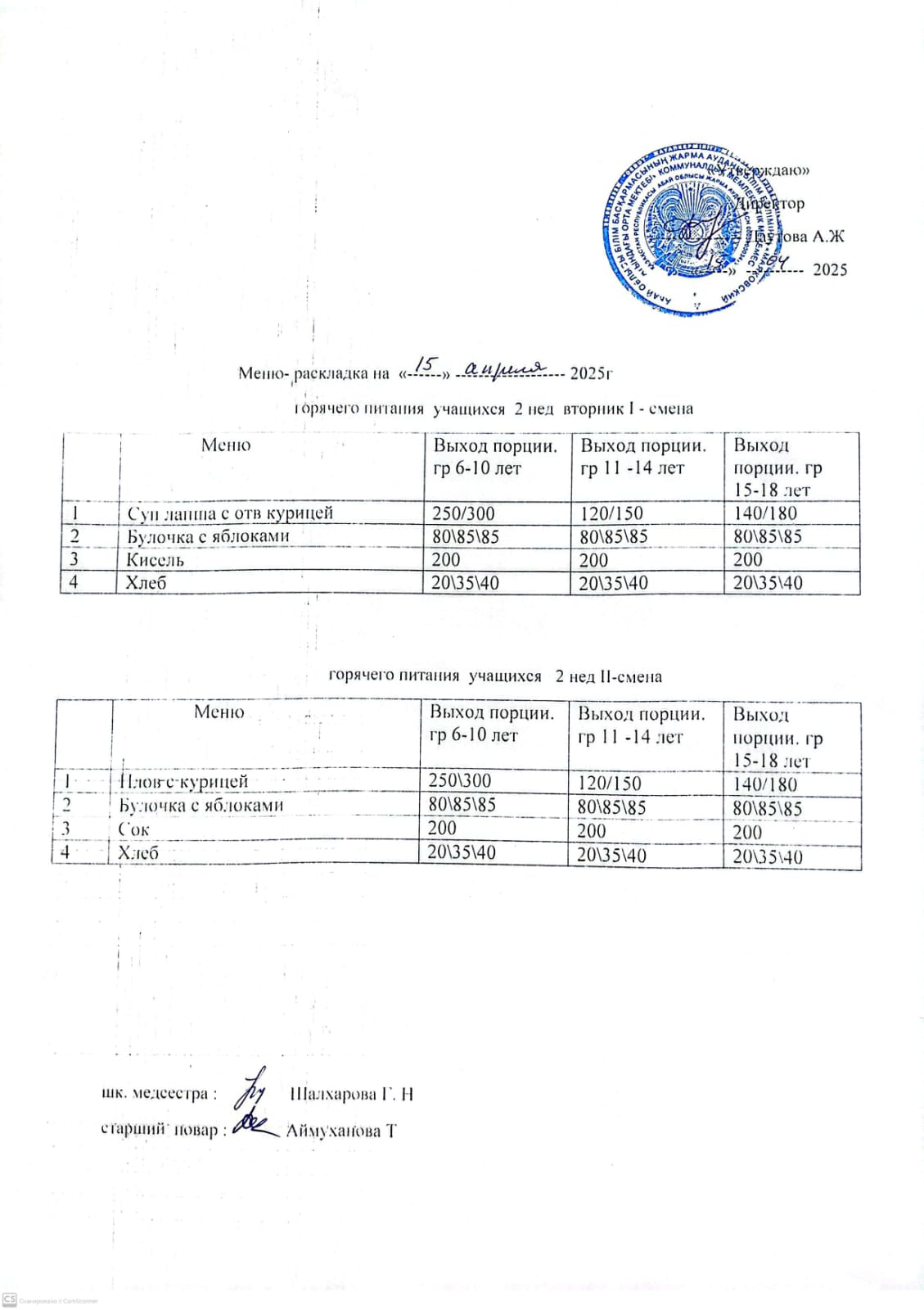 Мәзір/Меню