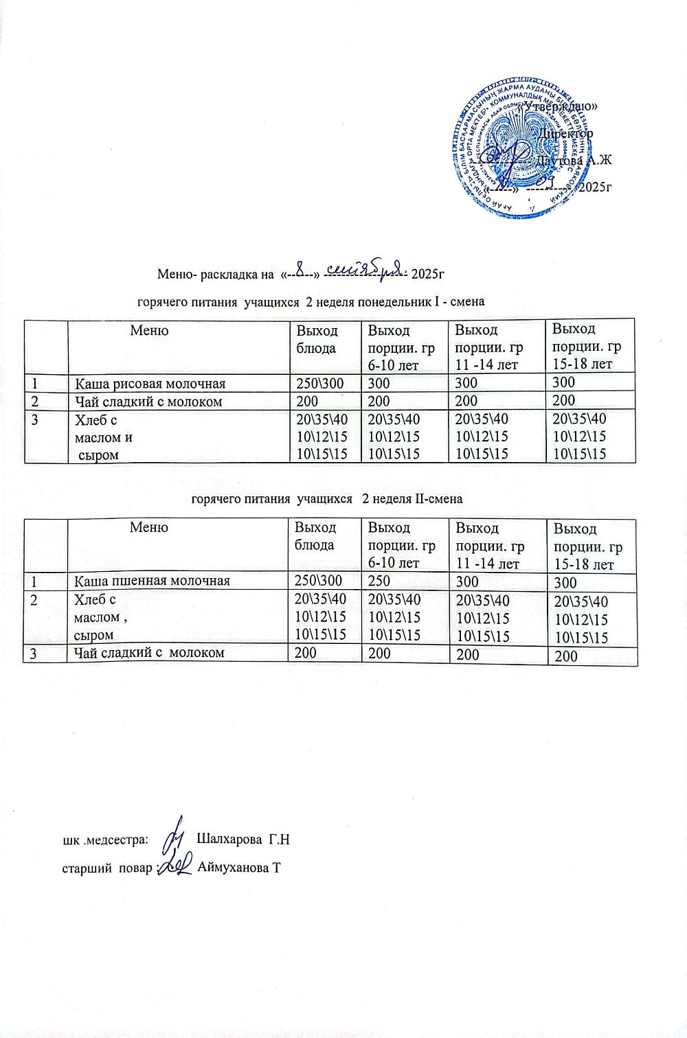 » Мәзір/Меню