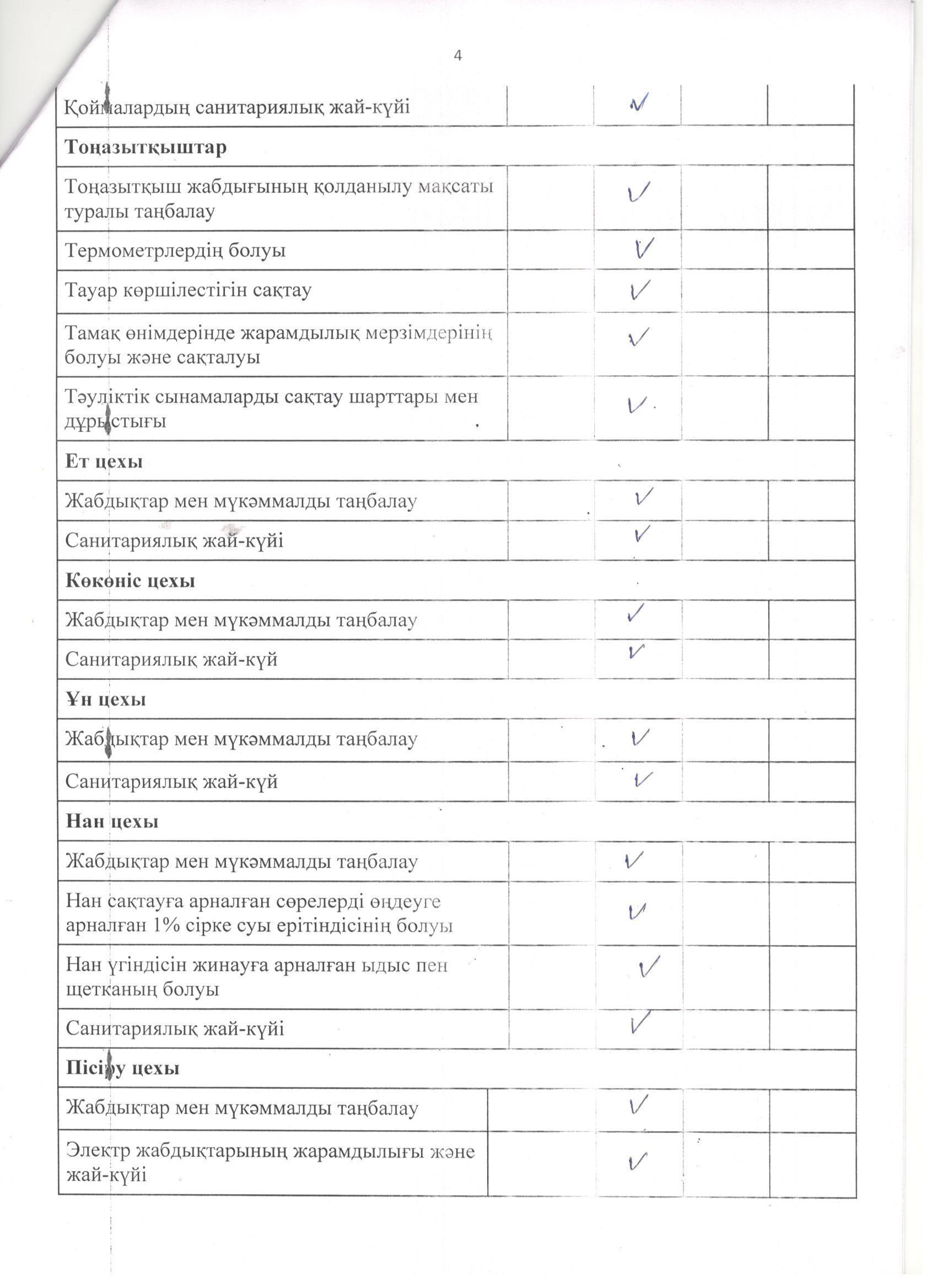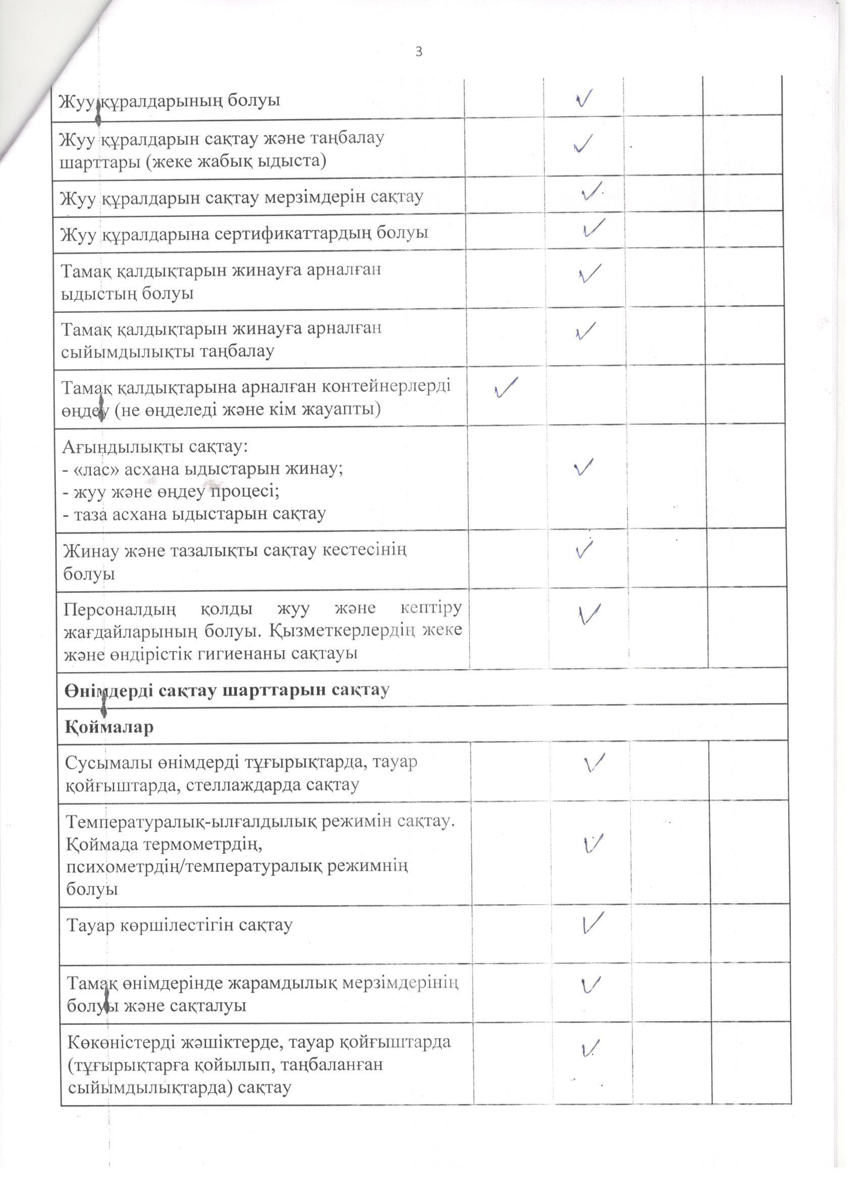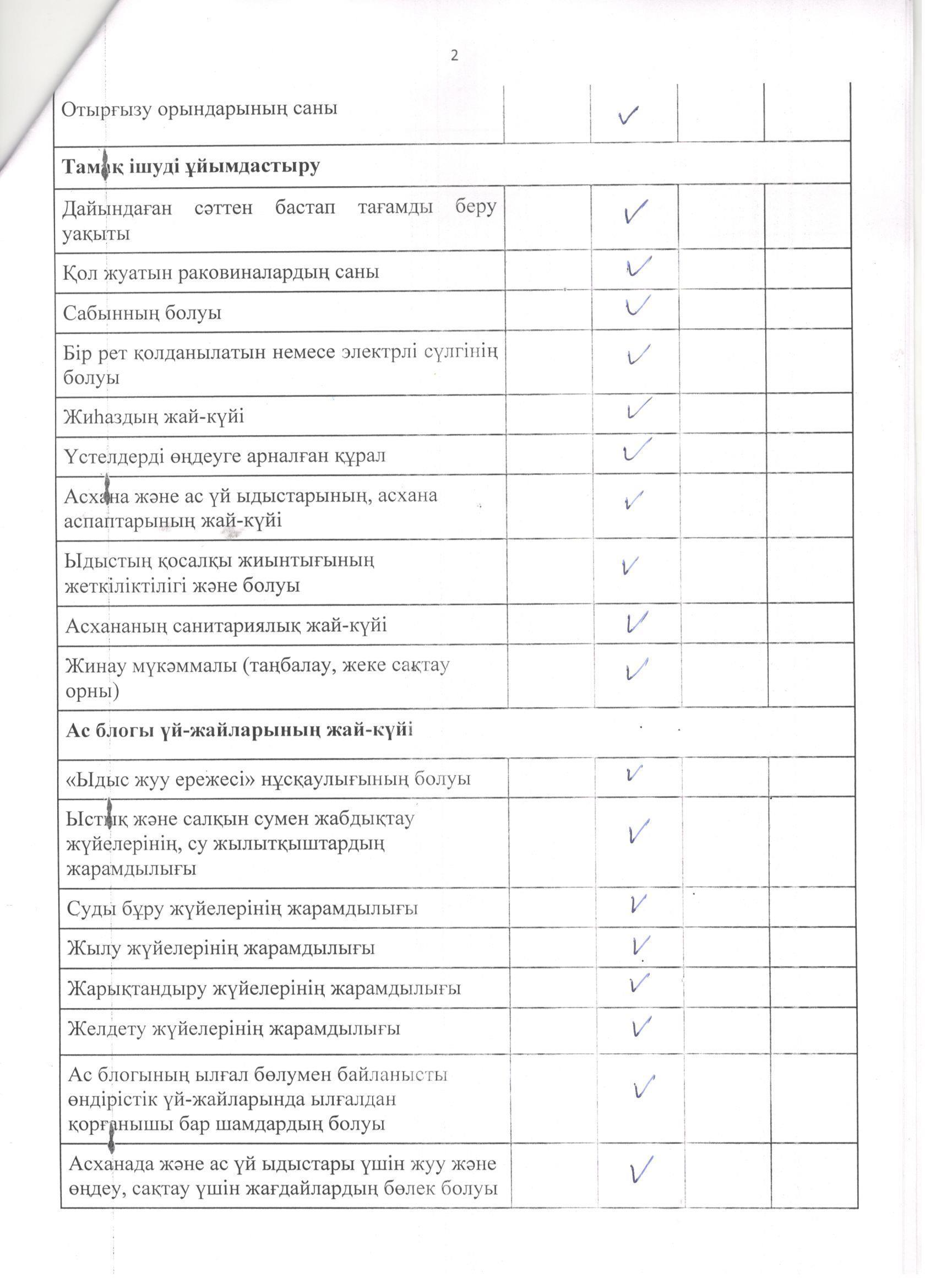 » Тамақтану сапасына мониторинг жүргізу актісі