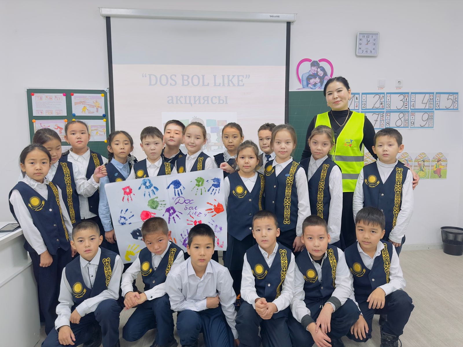 "DosbolLIKE" акциясы аясында 3 "Ә" сынып оқушыларымен тәрбие сағатын өткізді. Тәрбие сағаты барысында оқушылармен "Достық символы" салынып, тақырып аясында сауалнама алынып, әңгіме жүргізілді.