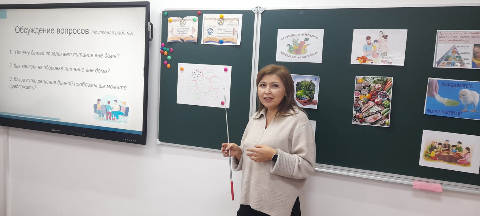 🔶«Біртұтас тәрбие» бағдарламасы аясында «Ата-аналарды педагогикалық қолдау орталығының» жұмыс жоспарына сәйкес 8-10 орыс сынып оқушыларының ата-аналарына "Бүкіл отбасы үшін пайдалы рацион" тақырыбында сабақ өткізілді.