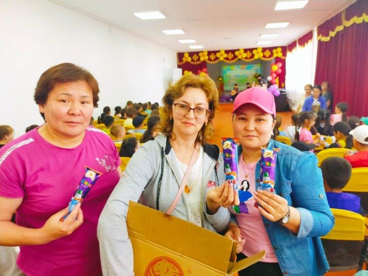 Бүгін отбасының қуаныштары, ұрпақ жалғасы - балаларымыздың тамаша мерекесі. Баланың күлкісі мен шаттанып қуанғанына не жетсін! Бір сәбидің ризашылғы – мың алғысқа тұрарлықтай емес пе! Осы күні мектебімізге балаларға базарлығымен біздің жомарт жүректі жандарымыз тағы да келді. Бұл жолы жеке кәсіпкер М.Н.Толенгутова кішкентайларды балмұздағымен қуантса, Л.П.Аплакиди аз қамтылған, көп балалы отбасы балаларына ойыншықтары мен жаздық аяқ киімдерін сыйға тарту етті.