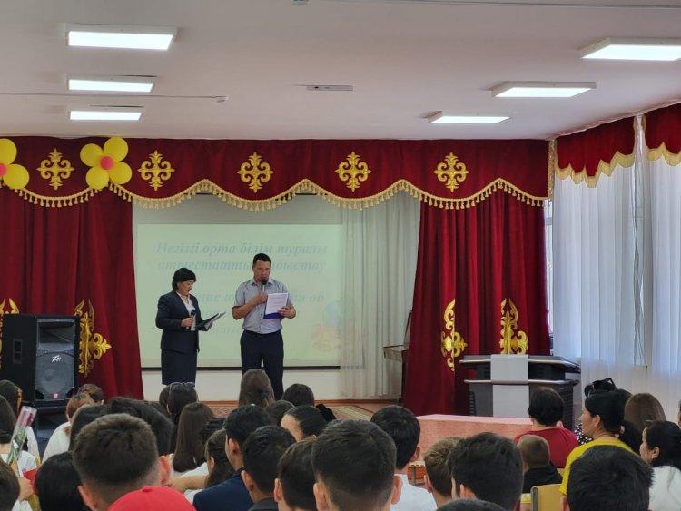 Жыл сайын дәстүрге айналып, осындай мерзімде мектептен 9 жыл білім алған оқушылар мемлекеттік сыннан өтіп, білімдерін саралап, куәлік иесі атанады.