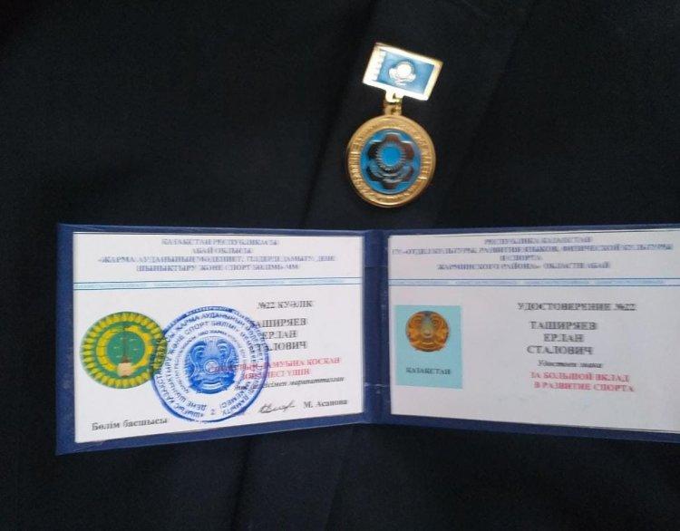 «Жарма ауданының спортын дамытуға қосқан зор үлесі үшін» төс белгісімен марапатталды.Құттықтаймыз! Жетістіктер көп болсын!