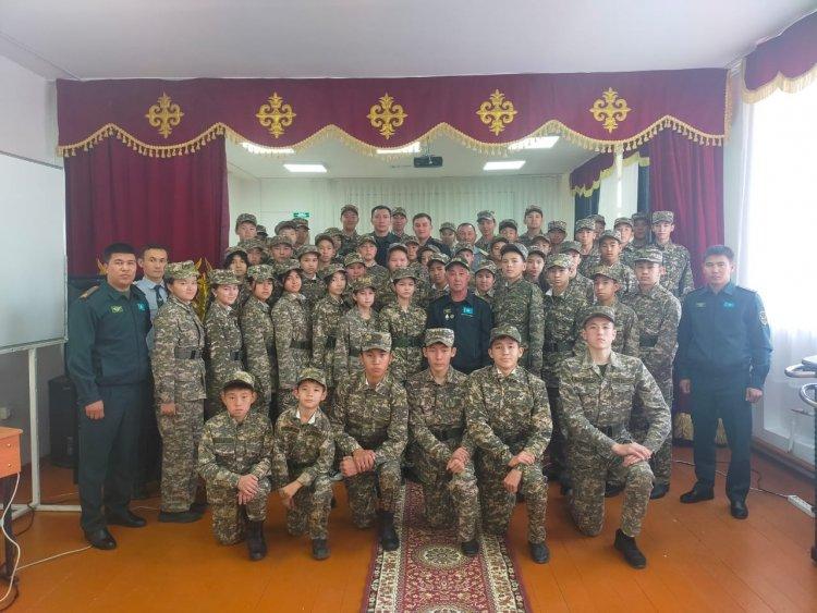 Кездесу барысында сарбаздарды отансүйгіштікке тәрбиеге баулу, әскери қызметтің жауапкершілігі мен ауыртпашылықтары жайлы әңгіме қозғалып, әскери оқу орындарға түсу тәртібі жөнінде айтылып өтті.