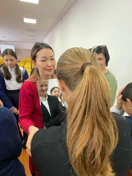 Өз денесіне және сыртқы келбетіне эмоционалды-бағалаушы көзқарасты қалыптастыру, қыздар арасында қарым-қатынас және мінез-құлық мәдениетін қалыптастыру деген көзқарасты тәрбиелеу мақсатында педагог-психологтар Тагиева И.Т. , Ибраимова М.М. және әлеуметтік педагог Тюлегетаева А.Ж жасөспірім қыздармен, 7-8 сынып оқушыларымен «Қыздар, өз арамызда...» тренинг элементтері бар жаттығулар өткізді. Жасөспірімдік шақта қыздар қыз болып қалыптасудың ерекше маңызды кезеңінен өтеді: бұл гормоналды өзгерістер, сыртқы түрдегі өзгерістер, құрдастарымен қарым-қатынас орнату және алғашқы махаббаттар. Ата-анасы оны мақтан тұтуы үшін, қоғамда табысты болуы үшін қыз бойында қандай қасиеттер болуы керек. Топта әр түрлі жаттығулар мен тапсырмалар орындау арқылы қыздар мұғалімдермен бірге осы сұрақтарға жауап табуға тырысты.