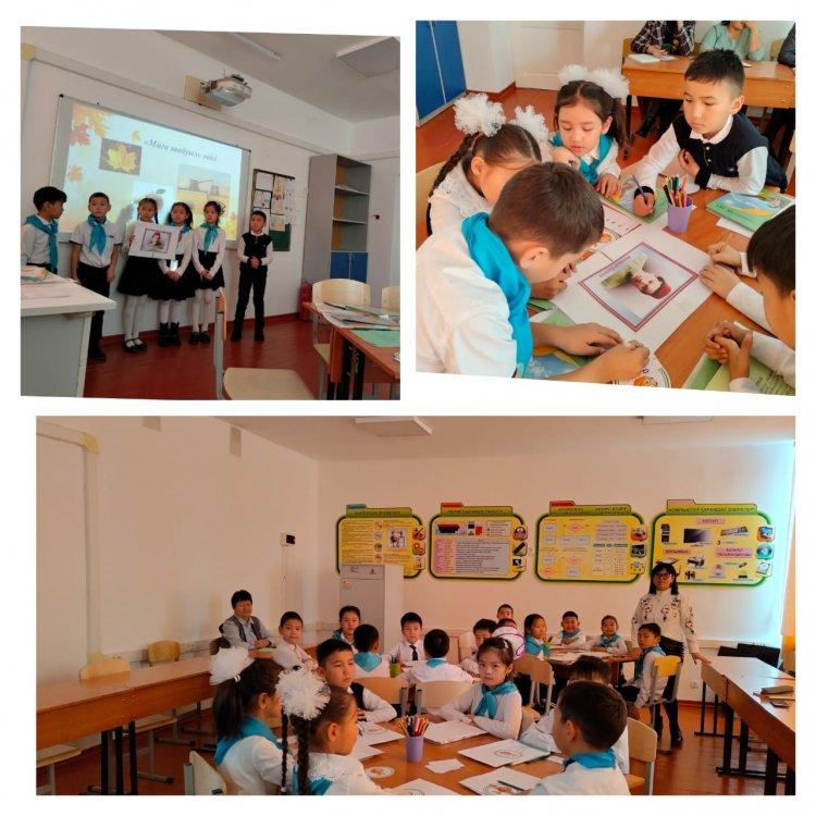 3«Ә» сыныбында Тайыр Жароковтың «Ауыл күзі» әдебиеттік оқу бойынша ашық сабақ өтті. «Миға шабул» әдісі арқылы сабақтың тақырыбын ашты. Оқушылармен жеке, жұптық және топтық жұмыстар жүргізілді. Оқушылар өлеңді мәнерлеп оқыды, өлеңдегі көркемдеуіш құралдарды тапты. Кестеге сәйкес ұйқасқа өлең құрастырды.«Ассоциация» тәсілі арқылы шумақтарға сурет салып, өмірмен байланыстырды.