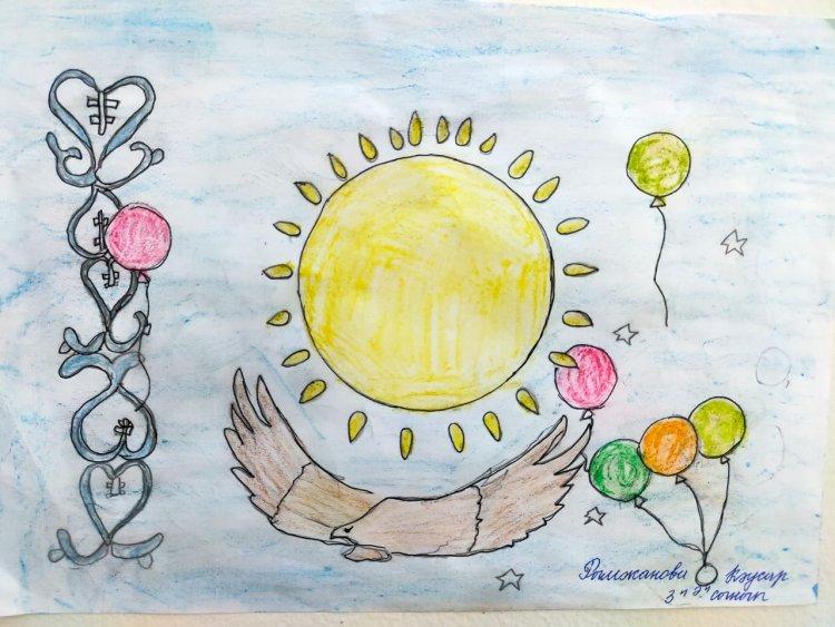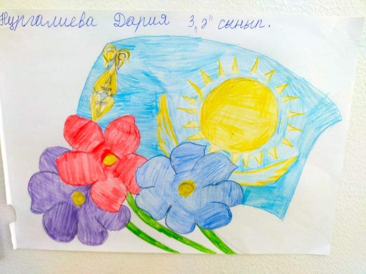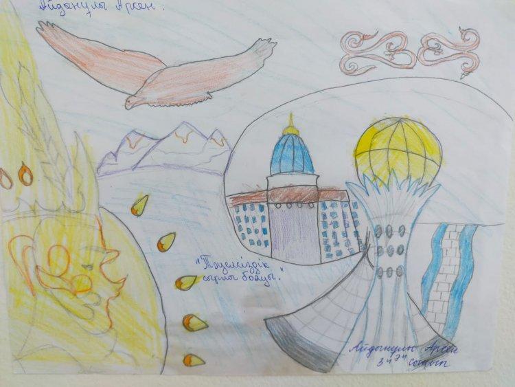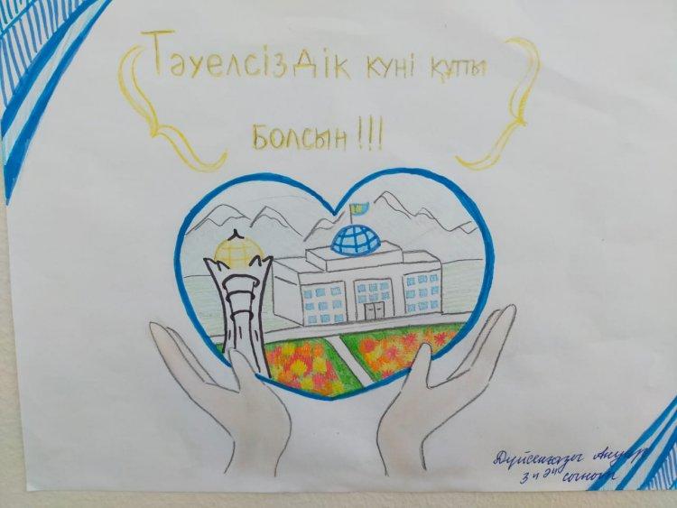 Мектебіміздің 2-4 сынып оқушылары Тәуелсіздік күніне орай «Тәуелсіздіктің сырлы бояулары» атты тақырыпта суреттер салып, көпшілік назарына ұсынды. Оқушылардың сан қилы ойлары түрлі бояулармен ақ бетке түсіріліп, ел Тәуелсіздігінің кең тынысты тылсым дүниесі мен болашақтың жарқын бейнесін нақтылай түскендей ой қалдырды.