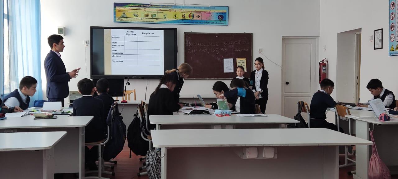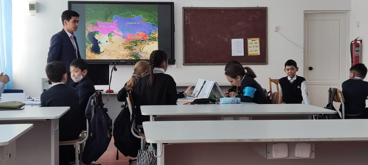 Ақпан айының 6-10 күндері аралығында география және тарих пәндері әдістемелік бірлестігі мұғалімдері «Тарих – өткенге сабақ, келешекке – өнеге...» атты тақырыбында апталық өткізді. Пәндік апталық - оқушыларға ел тарихын танып-білуде тарихи тұлғалардың қоғамдағы қызметтерінен үлгі алу, өзіндік ой-пікір қалыптастыру мақсатында жоспарланды. Апталық «Кім көп біледі?» сұрақ –жауап әдісі арқылы фойеде таныстырумен бастау алды. Апталық аясында «Ең үздік бизнес жоспар», «Интеллектуалдық казино» сайысы, «Бақытты ақшаға сатып алуға болады» тақырыбында дебат сабақ, «Лидер истории» атты шығармашылық шаралары ұйымдастырылып, ашық сабақтар өтті. Оқушылардың тарихи танымын, пәнге деген қызығушылығы мен білімдерін арттыру мақсатындағы ашық сабақтар ерекше жаңашылдықпен, үлкен талпыныспен өткізіліп, оң бағасын алды. Бүгінгі күн – ертең тарих. Сондықтан да тағылымы мол тарихты тереңнен қазған апталықтың оқушыларға берер өнегесі мен тәрбиесі мол болды