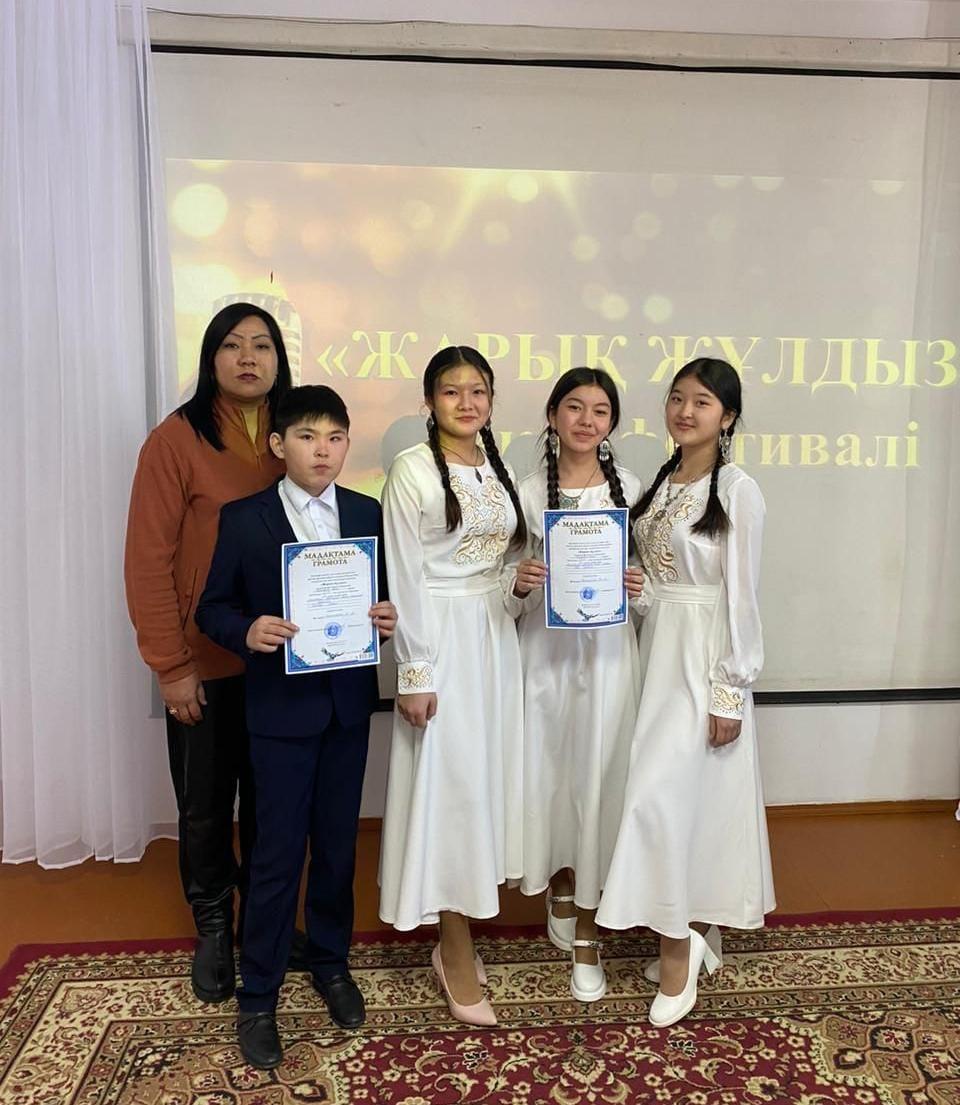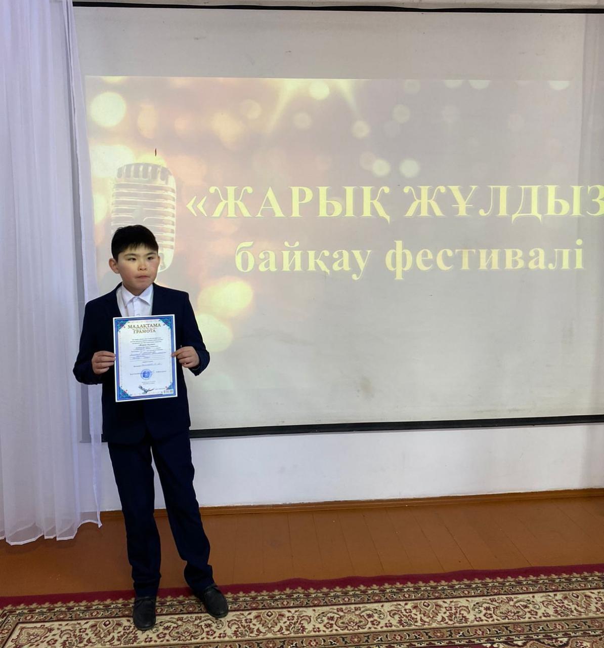 Ән өнерін дамыту, жас талант иелерін табу, жастар арасында әншілік өнердің кәсіби деңгейде көтерілуіне жол ашу мақсатында өткен аудандық «Жарық жұлдыз» фестиваль байқауында эстрадалық вокал жанры бағытында 14-17 жас ерекшелігі бойынша «НАЗ» триосы "Жұмақ мекен" әнімен жүлделі І-орынды иеленсе, 11-13 жас ерекшелігімен 5-сынып оқушысы Қайнар Ислам «Лебедей» әнімен ІІ-орынға ие болды (жетекшілері Б.М.Аксакова, Н.М.Баяхметова). Жеңімпаздарымызды марапаттарымен құттықтаймыз!