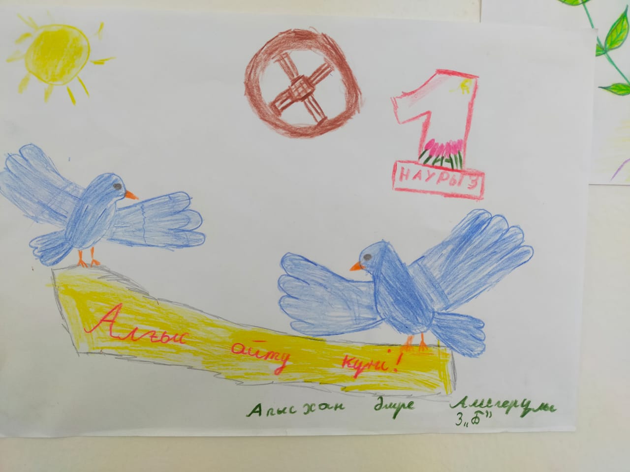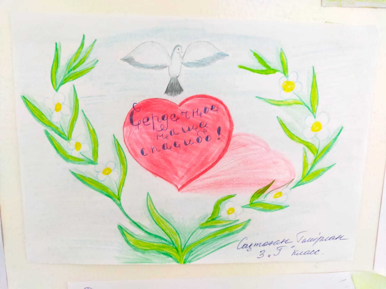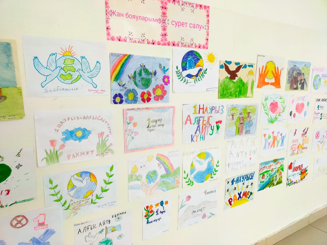 Алғыс айту күніне орай 2-4 сынып оқушылары арасында «Жан бояуларымен» сурет салу көрмесі ұйымдастырылды. Көрмеге оқушылар жүректерінен шыққан жылы лебіздерін жерге, туған елге, досқа, әке мен анаға деген алғыстарын ақ қағаз бетіне түсіріп, көпшілік назарына ұсынды.