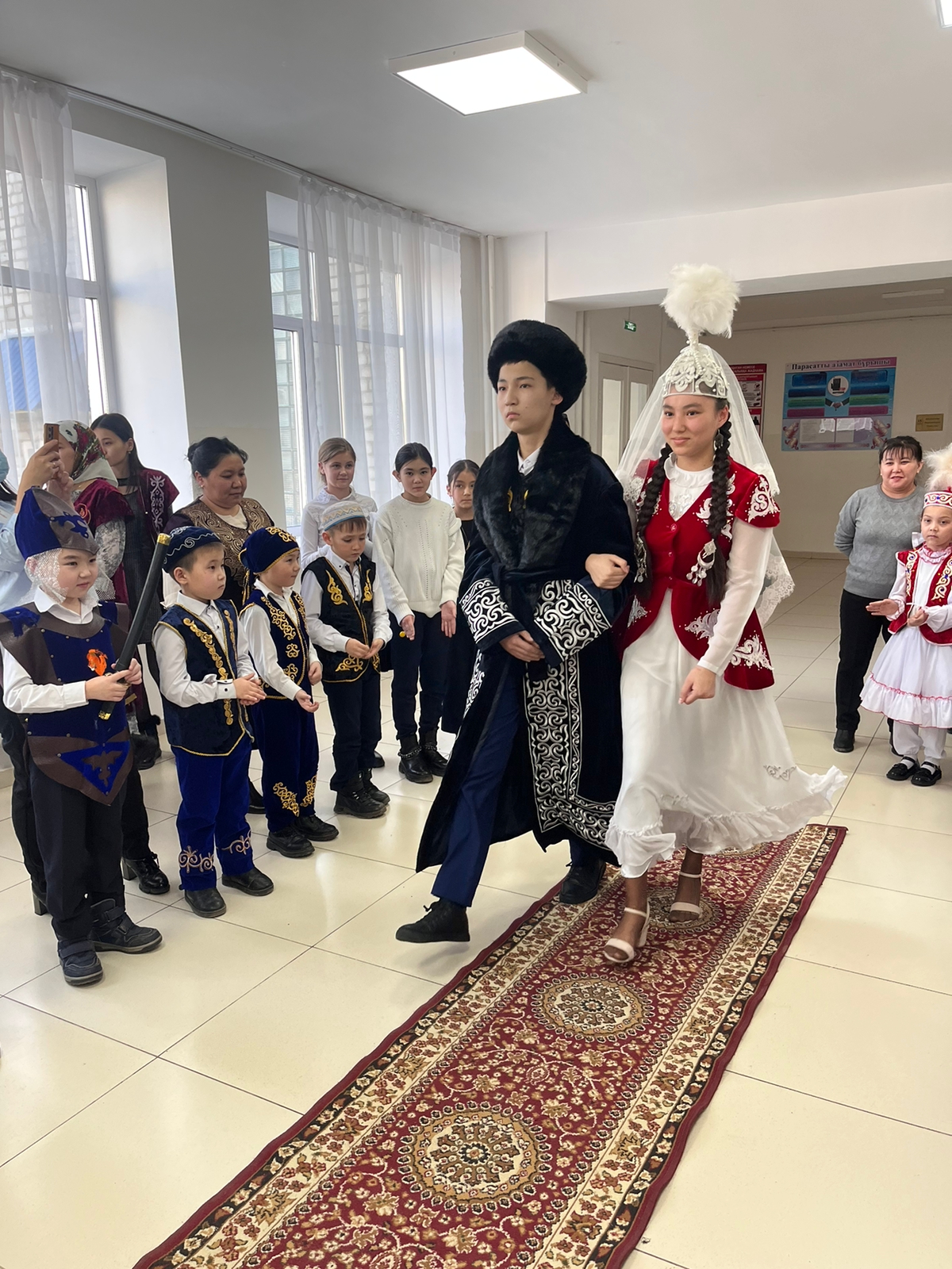 Көпшілікке киім атаулары мен олардың түсініктемелерін насихаттау және ұлттық киімдер жайлы жетік біліп жүру мақсатында 1-11 сыныптар арасында мерекелік ұлттық киім көрмесі ұйымдастырылды. Әр киімнің тарихы түсіндірілген көрменің өз құндылығы, мәні мен мағынасы мол болды.