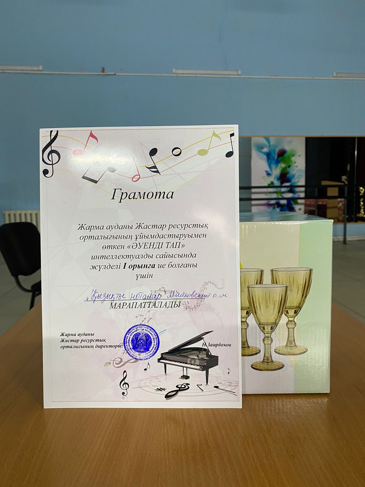 07 апрель 2023 0 1 2 3 4 5 «Әуенді тап» интеллектуалды сайысы 07.07.2023 жыл күні Жарма ауданы Жастар ресурстық орталығының ұйымдастыруымен өткен «Әуенді тап» интеллектуалды сайысына мектебімізден «Қызықты ноталар» командасы қатысып, жүлделі І- орынды иеленді. Команда мүшелерін марапаттарымен құттықтаймыз!