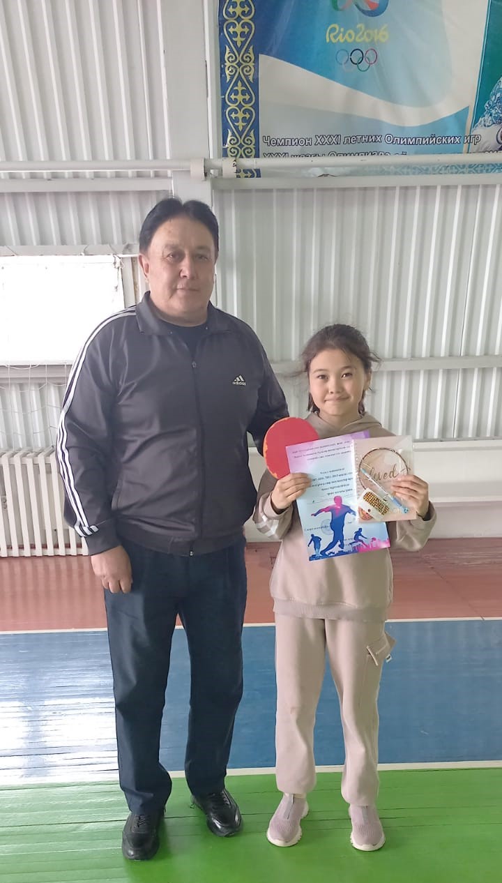 Үстел теннисінен 2007-2010, 2011-2013 жылы туған жасөспірім ұлдар мен қыздар арасында өткен аудан біріншілігіне мектебіміздің 4 сынып оқушысы Таширяева Томирис қатысып, жүлделі 1- орынды (жетекшісі Т.Т.Сапариянов) иеленді. Жетекшісі мен жеңімпазымызды жеңістерімен құттықтаймыз!