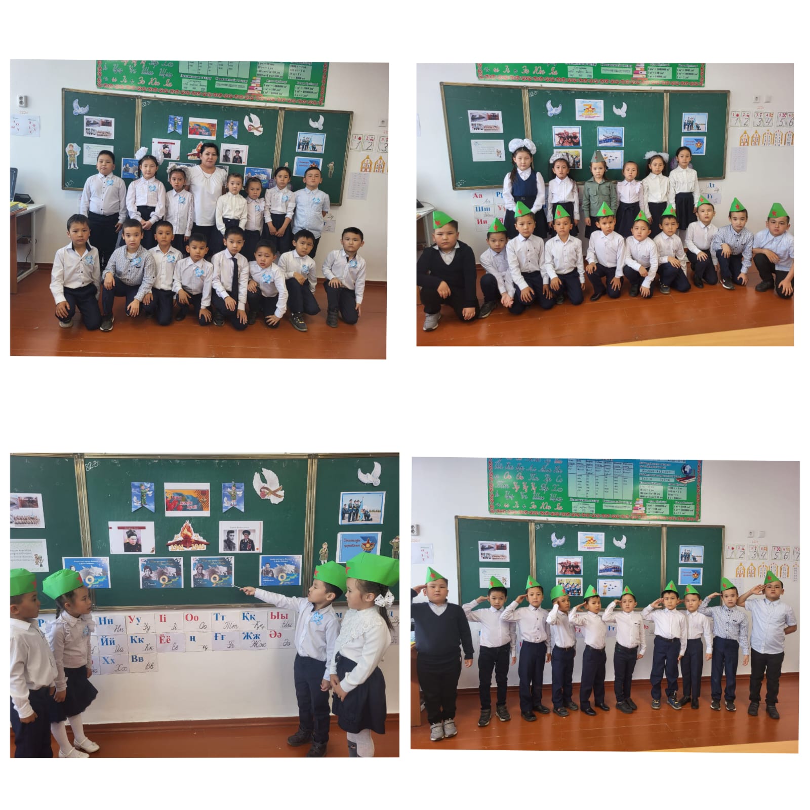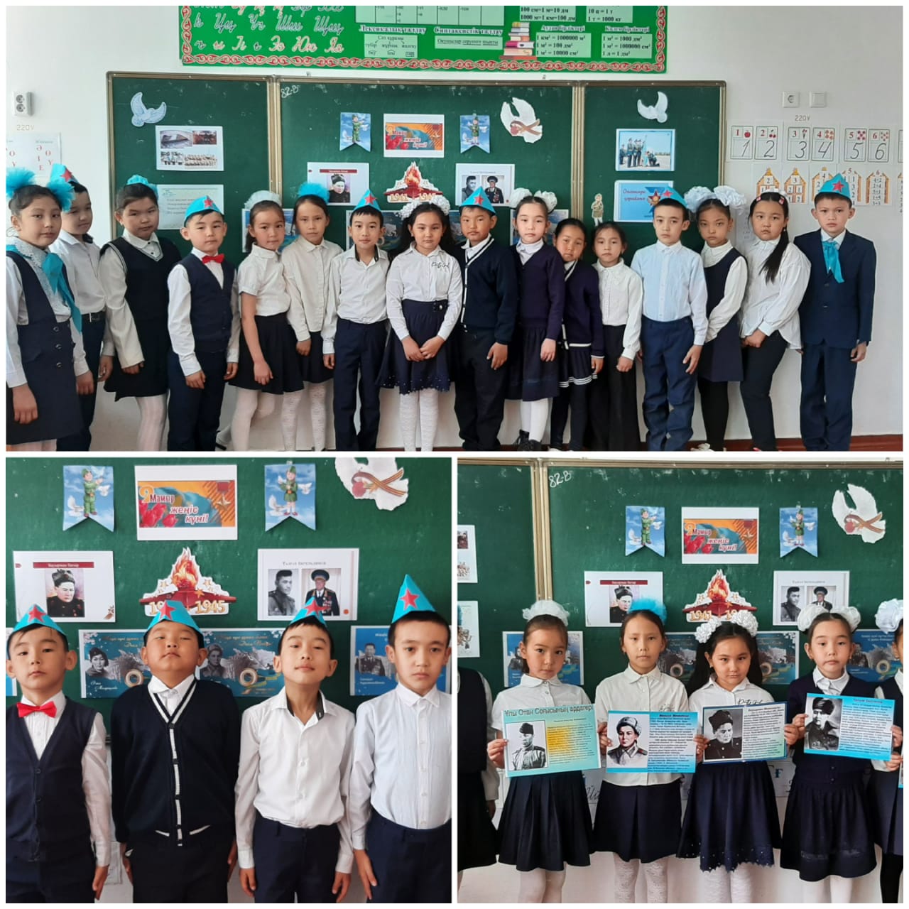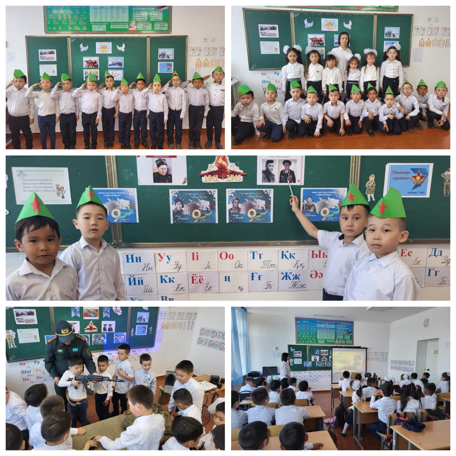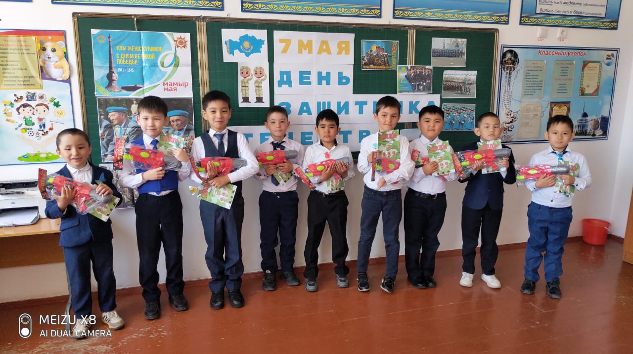 7 мамыр "Отан қорғаушылар" күні, 9 мамыр Жеңіс күніне мектебіміздің 1-11 сынып оқушыларымен сыныптық тәрбие сағаттары өткізілді. Бұл күндері тәуелсіз еліміздің өзіндік қорғаныс қабілеті мен жеңістің ұрпағы ұмытпайтын ерлігі ұлықталады. Егеменді еліміздің отын сөндірмей, қорғаныс жүйемізді бекем ұстайтын жастарға тәрбиелік мәні мен мағынасы бар сабақтардың өтуі- болашақтың іргесі берік болуына жетелейтін кішкентай қадам екендігін айтпақпыз. Баршамызға мереке құтты болсын дейміз!